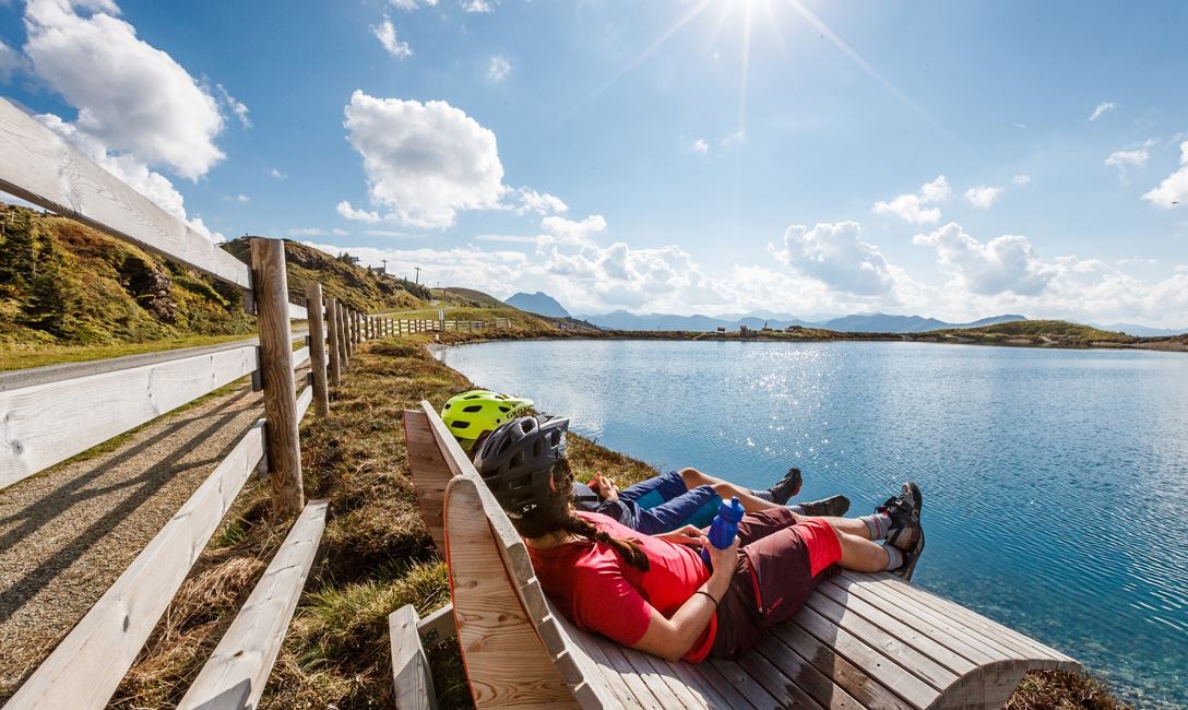 Diese Tour nach Jochberg und auf den Pengelstein verlangt schon eine etwas bessere Kondition, denn die 1166 Höhenmeter der Tour sind teilweise etwas steiler. Ausgehend vom Tourismusbüro in Brixen im Thale führt uns aber der Brixentaler Radweg noch gemütlich nach Kitzbühel. Ab Kitzbühel geht es dann auf dem Leukental Radweg flach weiter nach Aurach und Jochberg. Ab hier beginnt dann der Schotterweg hinein in den Saukaserbachgraben. Vorerst noch schattig und nur leicht bergauf, später aber schlängelt sich der Weg unter der Sonne mal steiler, mal nicht so steil bergauf. Vorbei an der Kasereggalm haben wir einmal kurz die 3S-Bahn im Blickfeld. Bis wir diese erreichen vergehen aber noch einige Kurven, die uns bis auf 1927 m über dem Meeresspiegel bringen. Am Restaurant Pengelstein beginnt dann eine vorerst sehr holprige Abfahrt, die sich aber immer mehr verbessert. Vorbei an der Usterkaralm und der Hiesleggalm haben wir schlussendlich sogar Asphalt unter den Rädern. Auf dem Aschauer Radweg gelangen wir nach Kirchberg, und auf dem Brixentaler Radweg fahren wir wieder nach Brixen zurück.