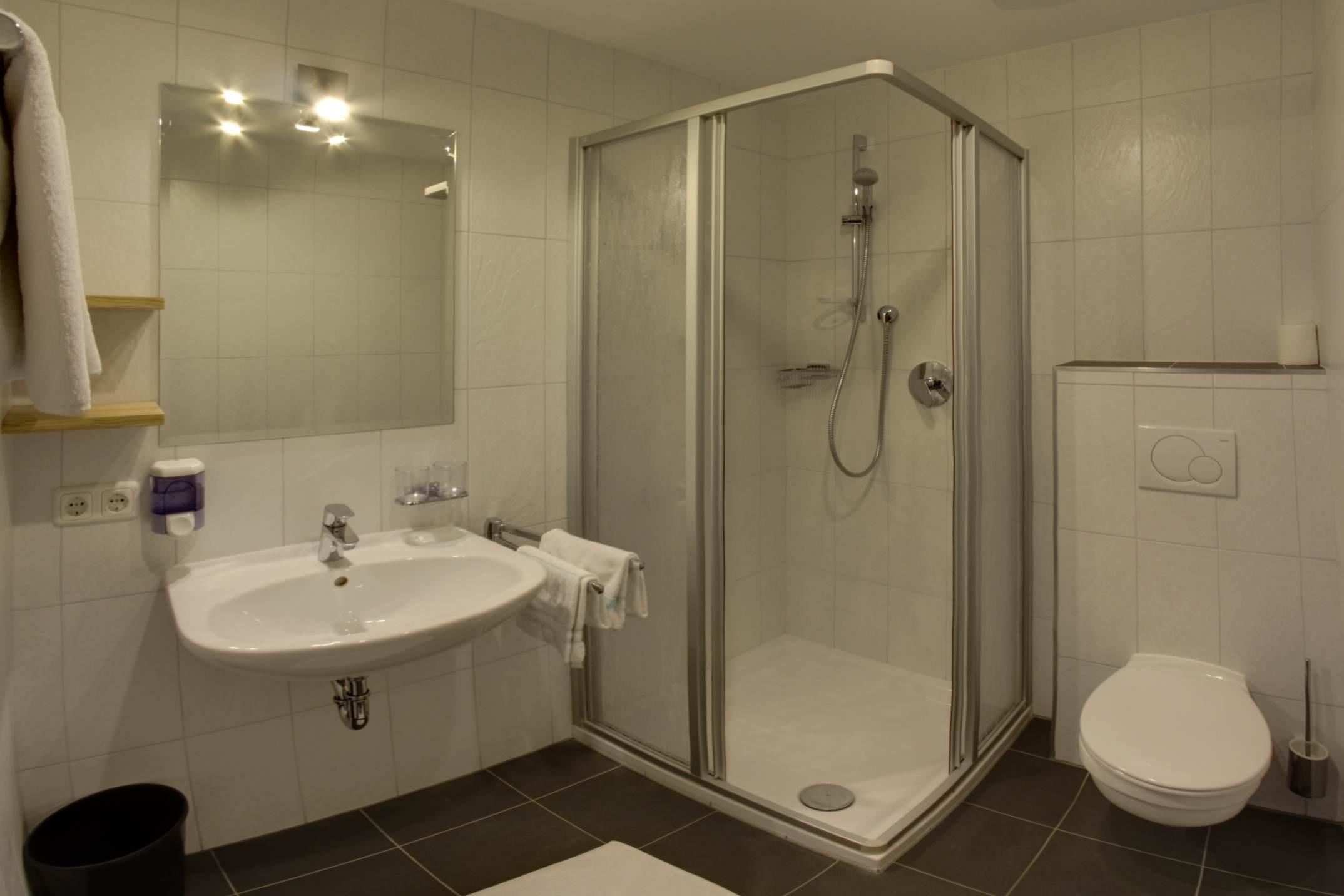 Unser Haus bietet Ihnen Komfortzimmer mit Dusche/WC, Flat TV und Balkon.