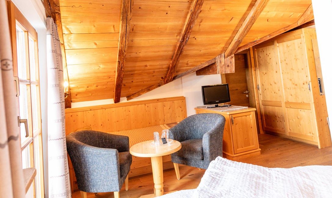 Dusche oder Bad mit WC, Fön, Selbstwähltelefon, Kabelfernsehen, Zimmersafe, größtenteils Balkon, Gratis W-LAN, mit viel Holz möblierte Zimmer