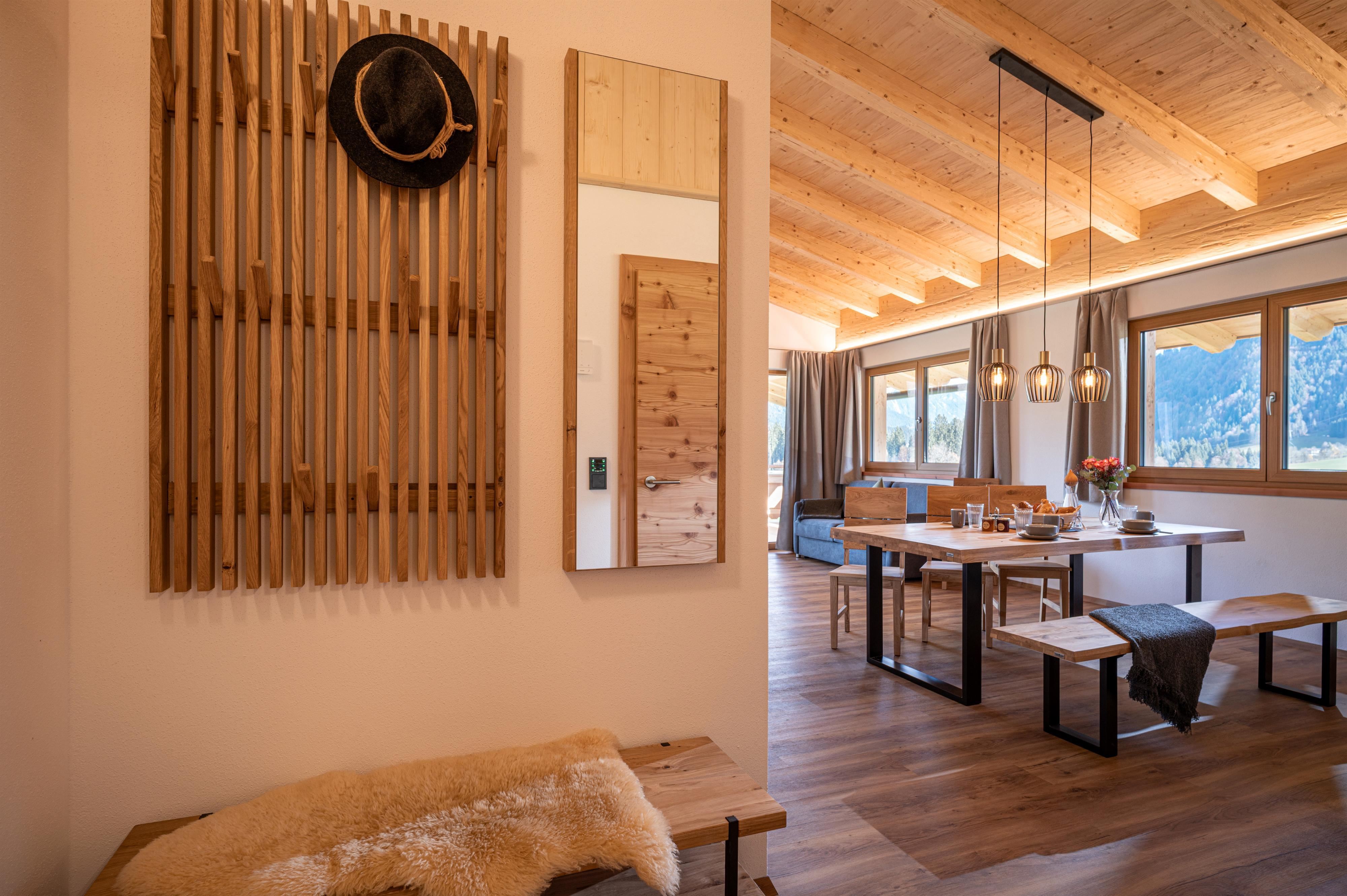 Mit viel Liebe zum Detail und ganz viel Herzblut wurde das Haus von Familie Hölzl in den Jahren 2024 und 2025 geplant und gebaut. Dabei entstand ein echtes Familienprojekt, in dem man das Persönliche überall spürt: Von handgemachten Möbelstücken bis hin zu liebevoll gestalteten Räumen - es steckt überall ein Stück "Mitterer" drin. Die Räumlichkeiten sind hochwertig aber bodenständig. s'Mitterer lädt dazu ein, sich wie daheim zu fühlen.
