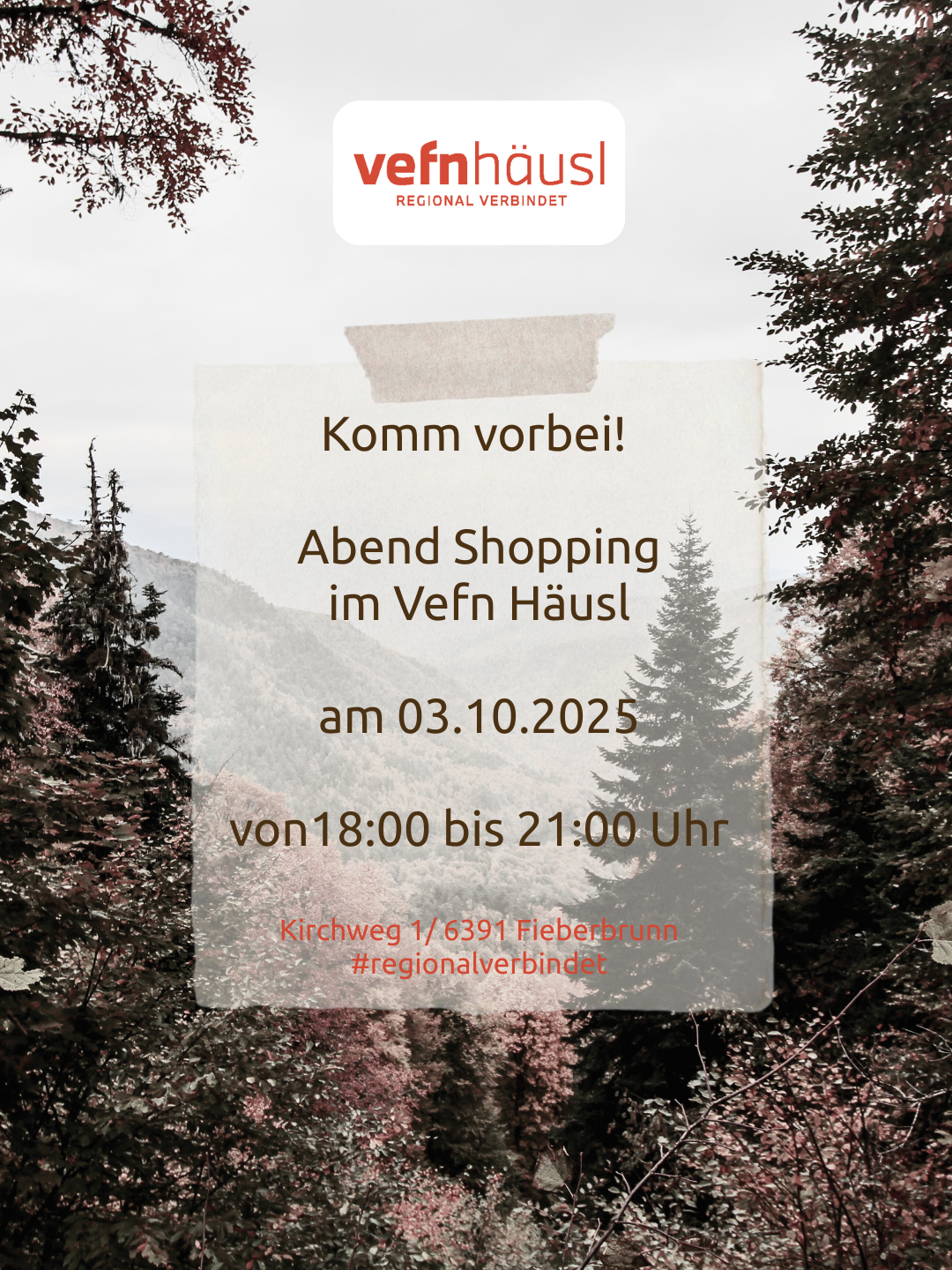 Im Vefn Häusl und bei Rosi´s Sporteck gibt es am Freitag die Möglichkeit für ein besonderes Shopping-Erlebnis am Abend | Parken: direkt im Ortszentrum (kostenfrei)