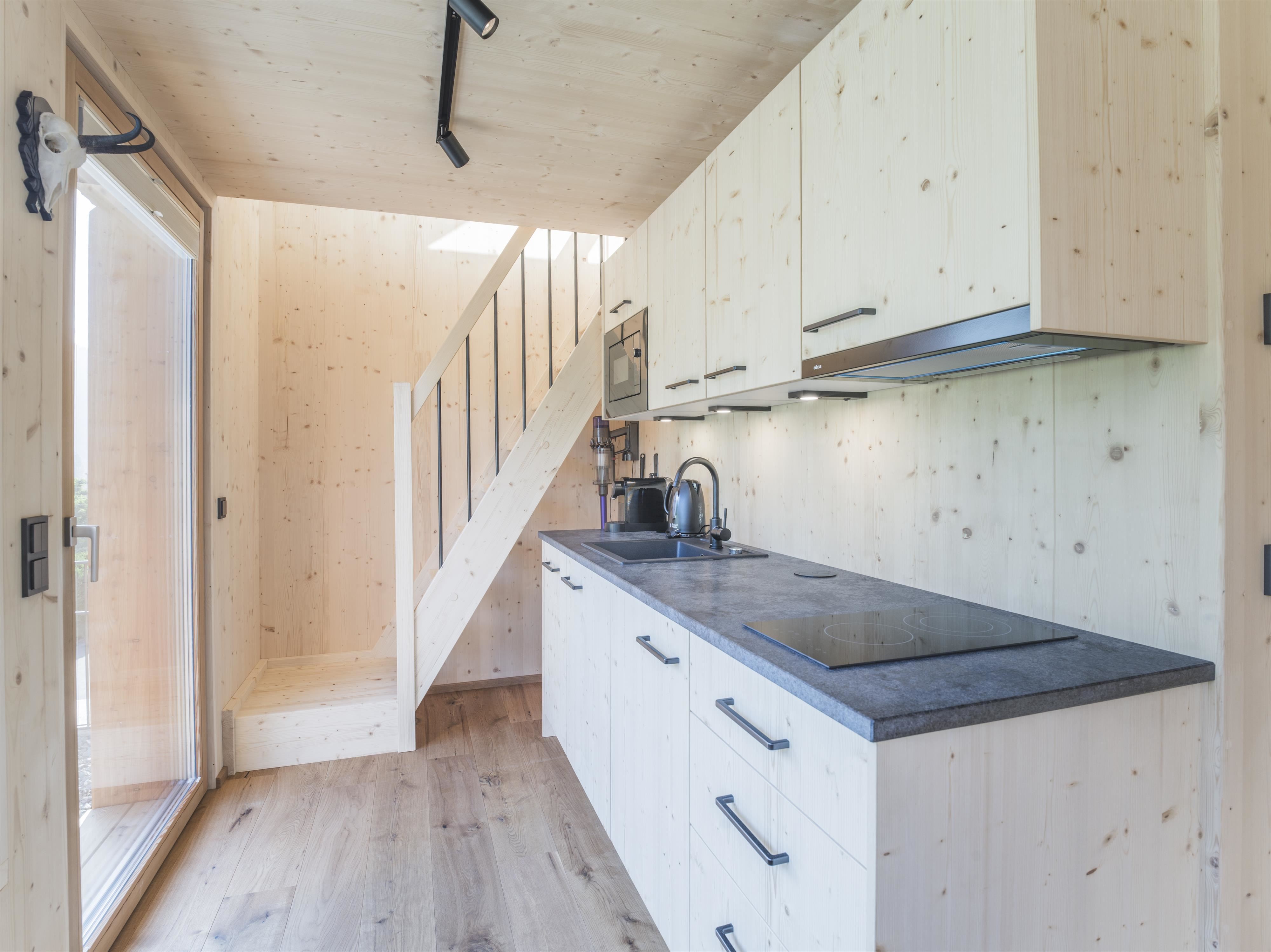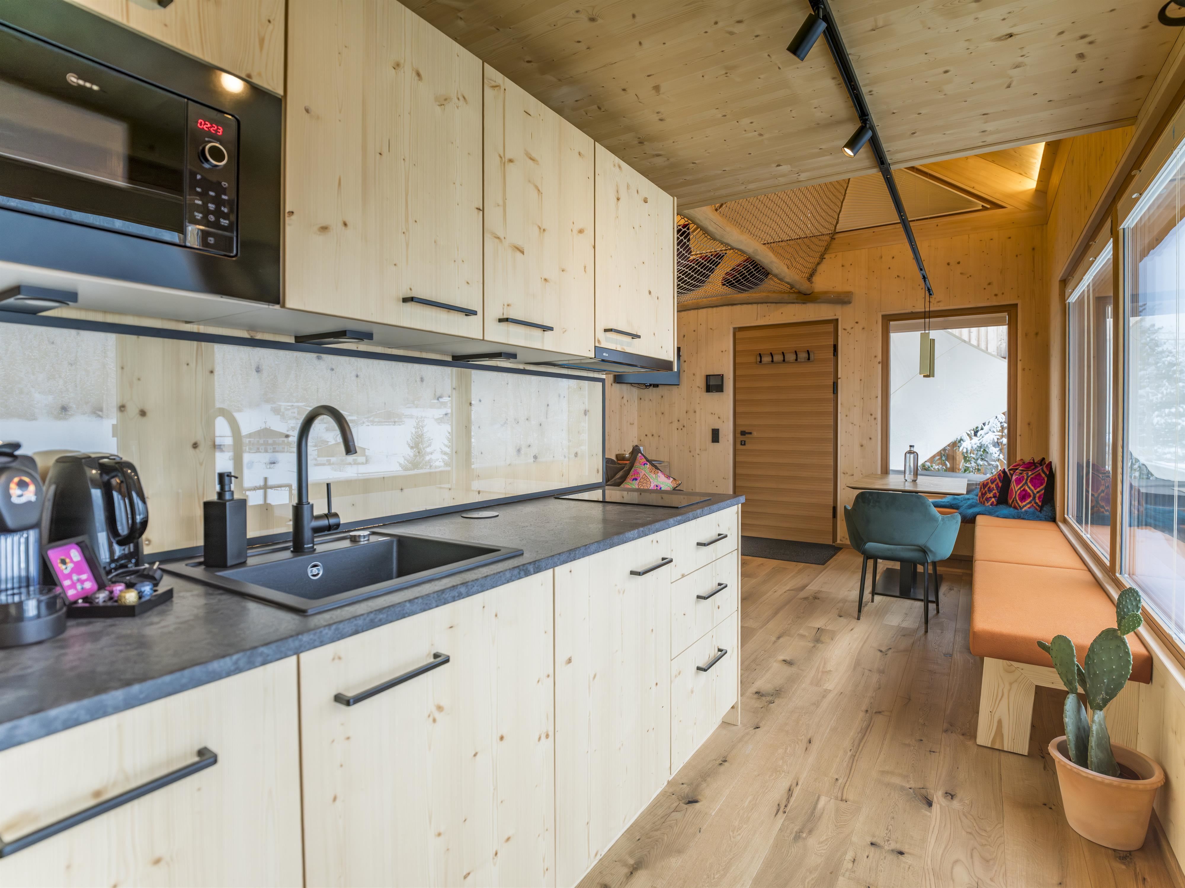 Unsere Chalets BERG.HEIMAT, BERG.KUNST und BERG.PIONIERE bieten:- Vollausgestattete Küche