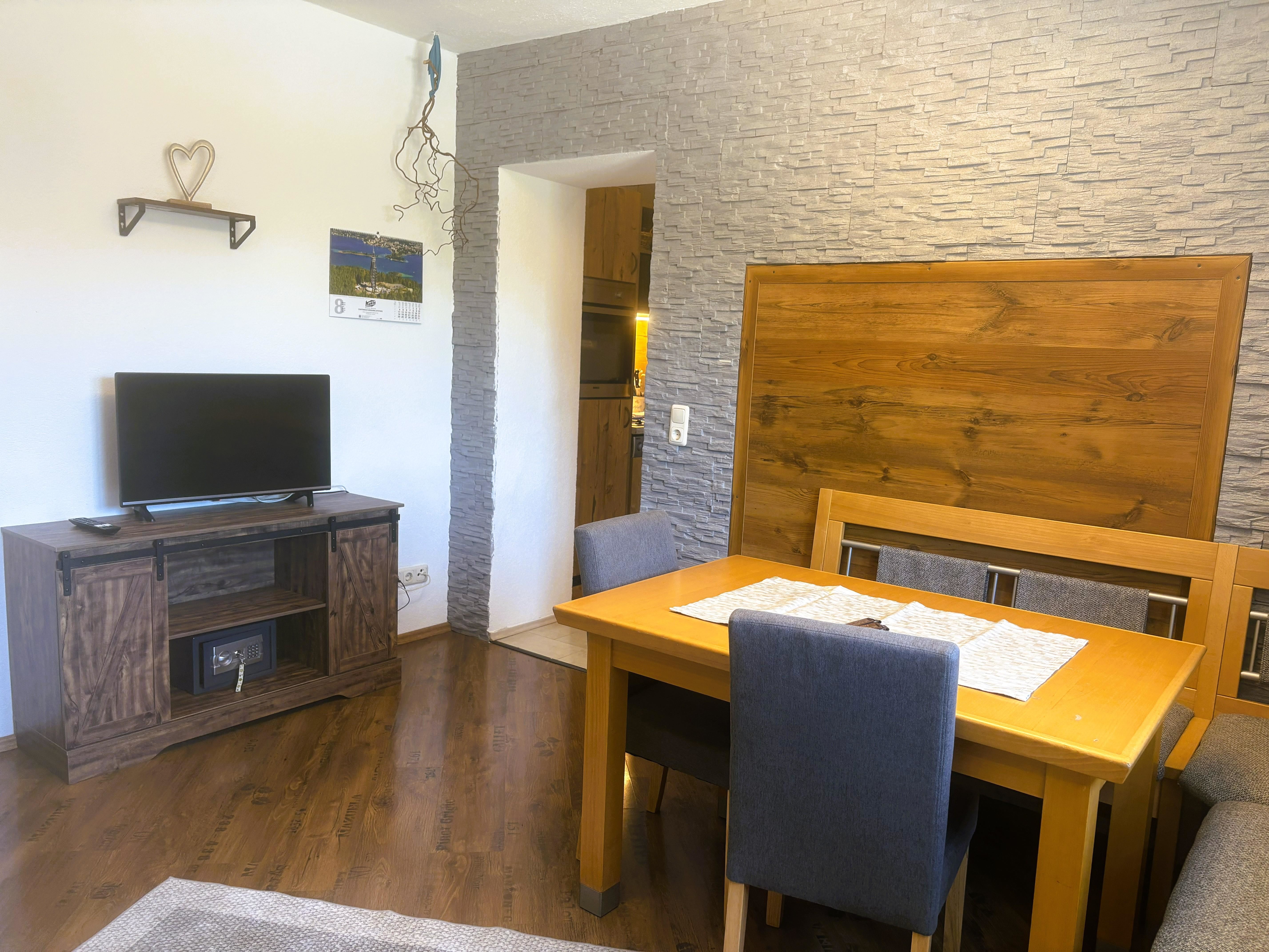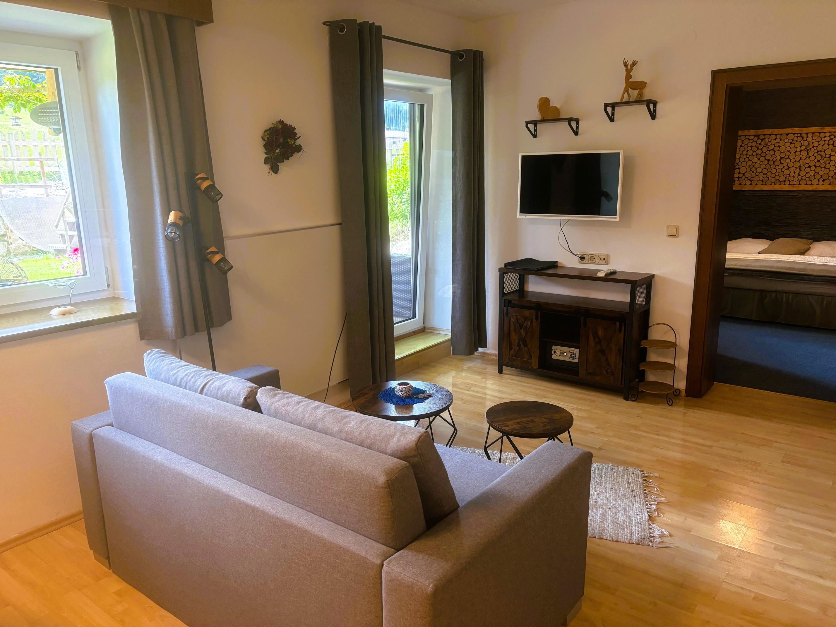 Gemütlich eingerichtete Wohnung mit: Vorraum, 2 Schlafzimmer mit Doppelbett, Wohnzimmer mit Ess- und Sitzecke, Kochnische, Dusche/WC, im 2. Stock mit Balkon, im Parterre mit Terrassenbenützung auf der Südseite; ca. 65 m². Alle FeWo-s sind mit Geschirrspülmaschine, Backofen, Kabel-TV, Radio, W-Lan, Bettwäsche, Handtücher, Haarfön ausgestattet!