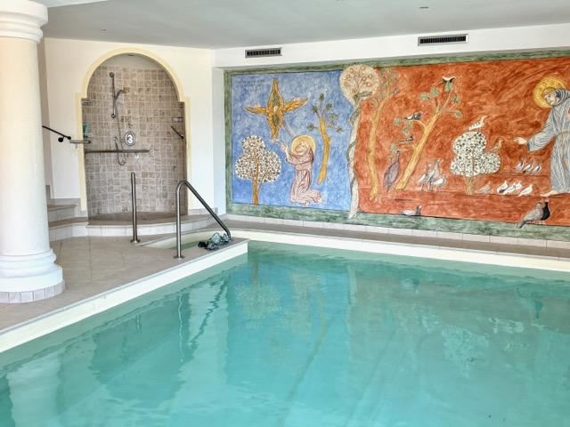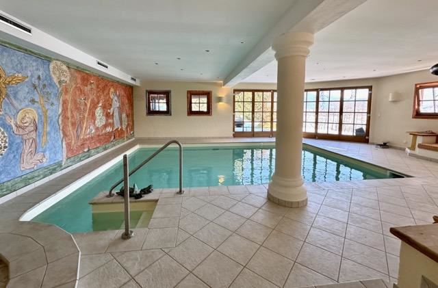 Im Untergeschoss des Hauses befindet sich der große private Pool mit Zugang zu eine der vielen Terassen sowie die eigene Sauna.