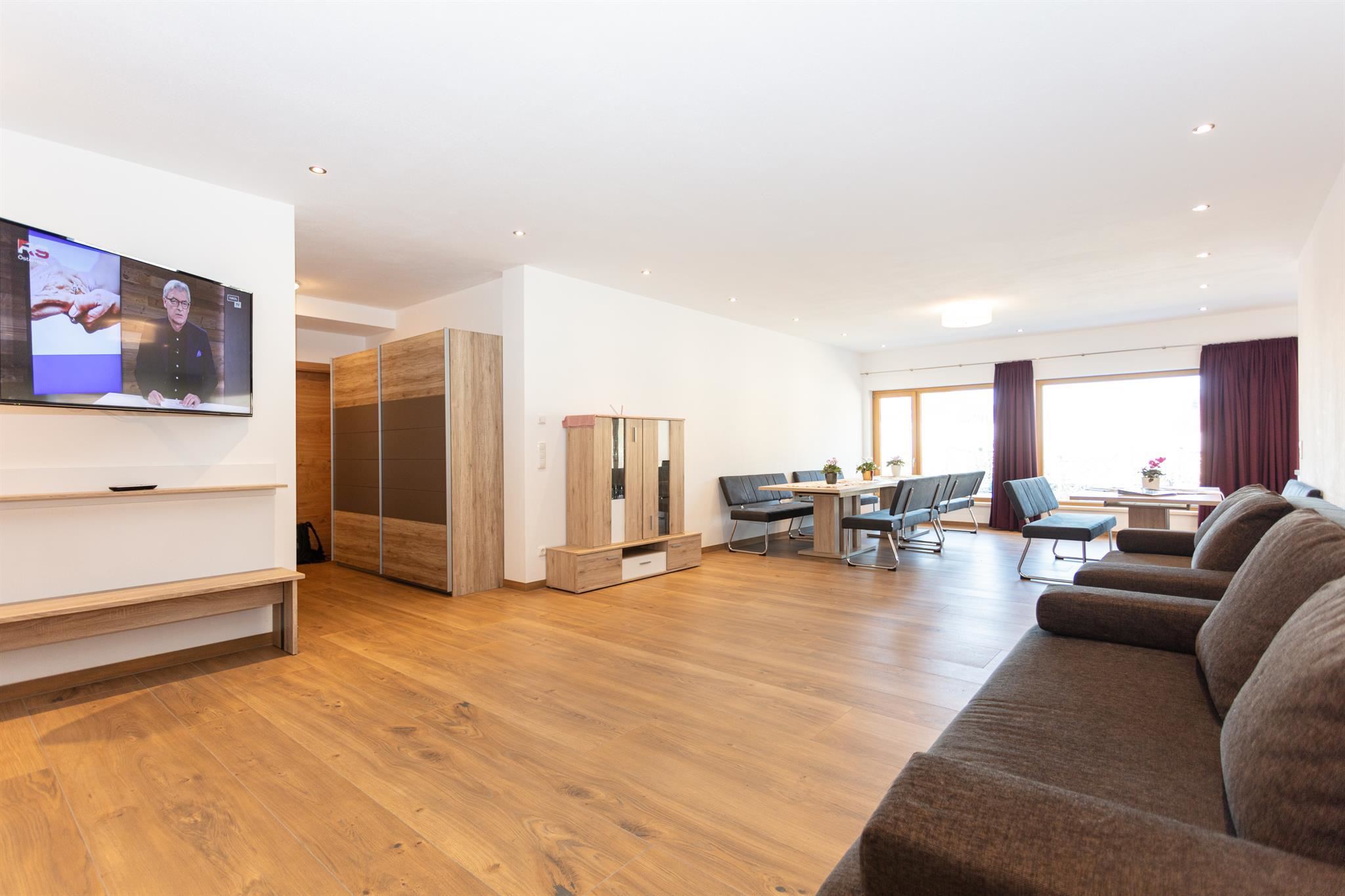 The ski area/Fleckalmbahn gondola, ski school and nursery slopes, is just a 3-minute walk away. From there it’s off to the pistes in Winter and in Summer into the magnificent hiking area.