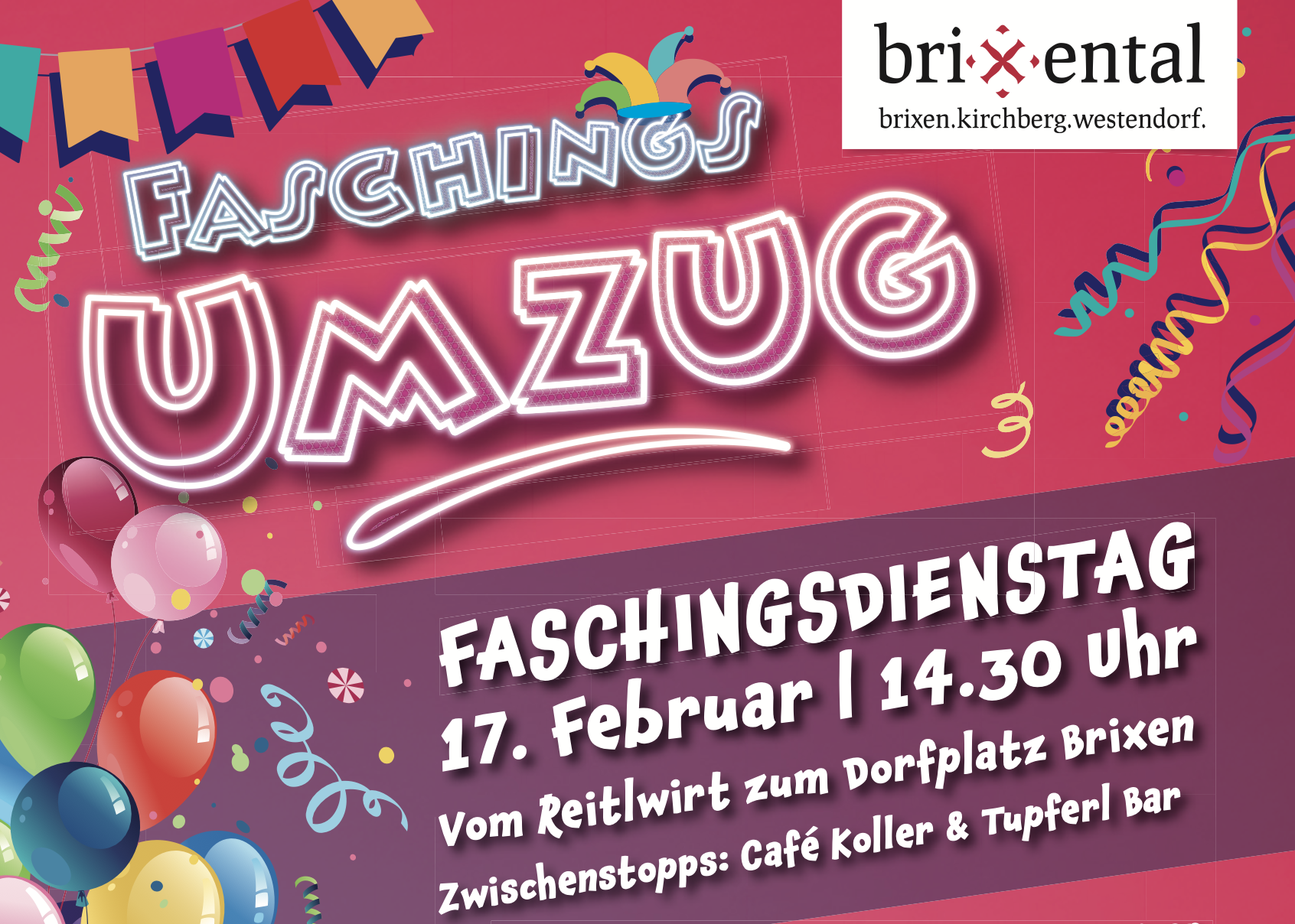 The parade will be led and musically accompanied by the Brixen Music Band, which will create a great atmosphere with its lively sounds. From Reitlwirt, we will parade through the town in colorful costumes to the village square. Along the way, we will make stops at Café Koller and Tupferl – good mood guaranteed!