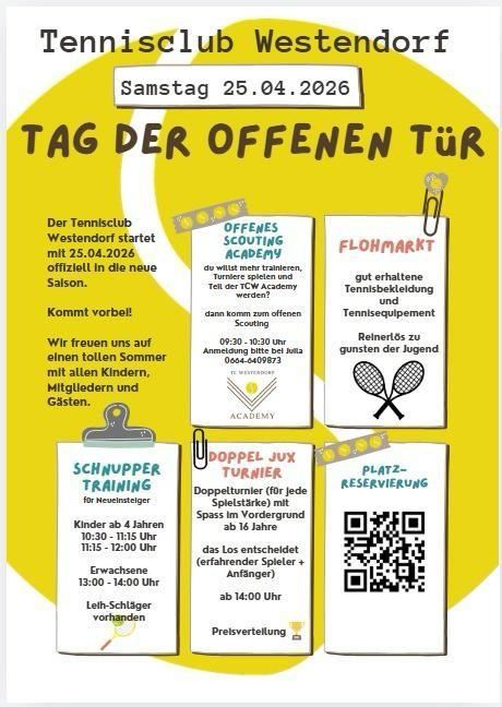 The Tennis Club Westendorf officially starts the new season on April 25, 2026.