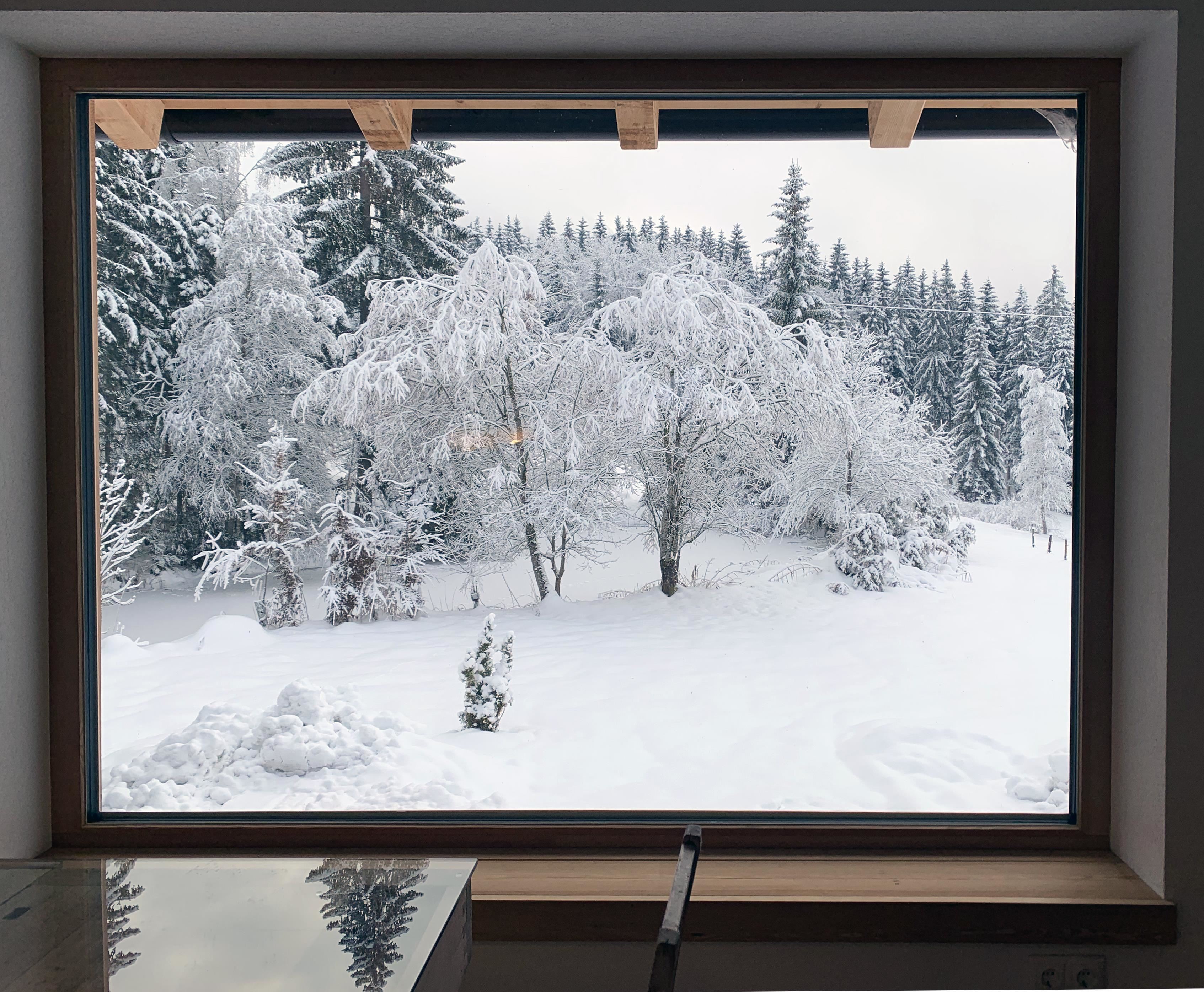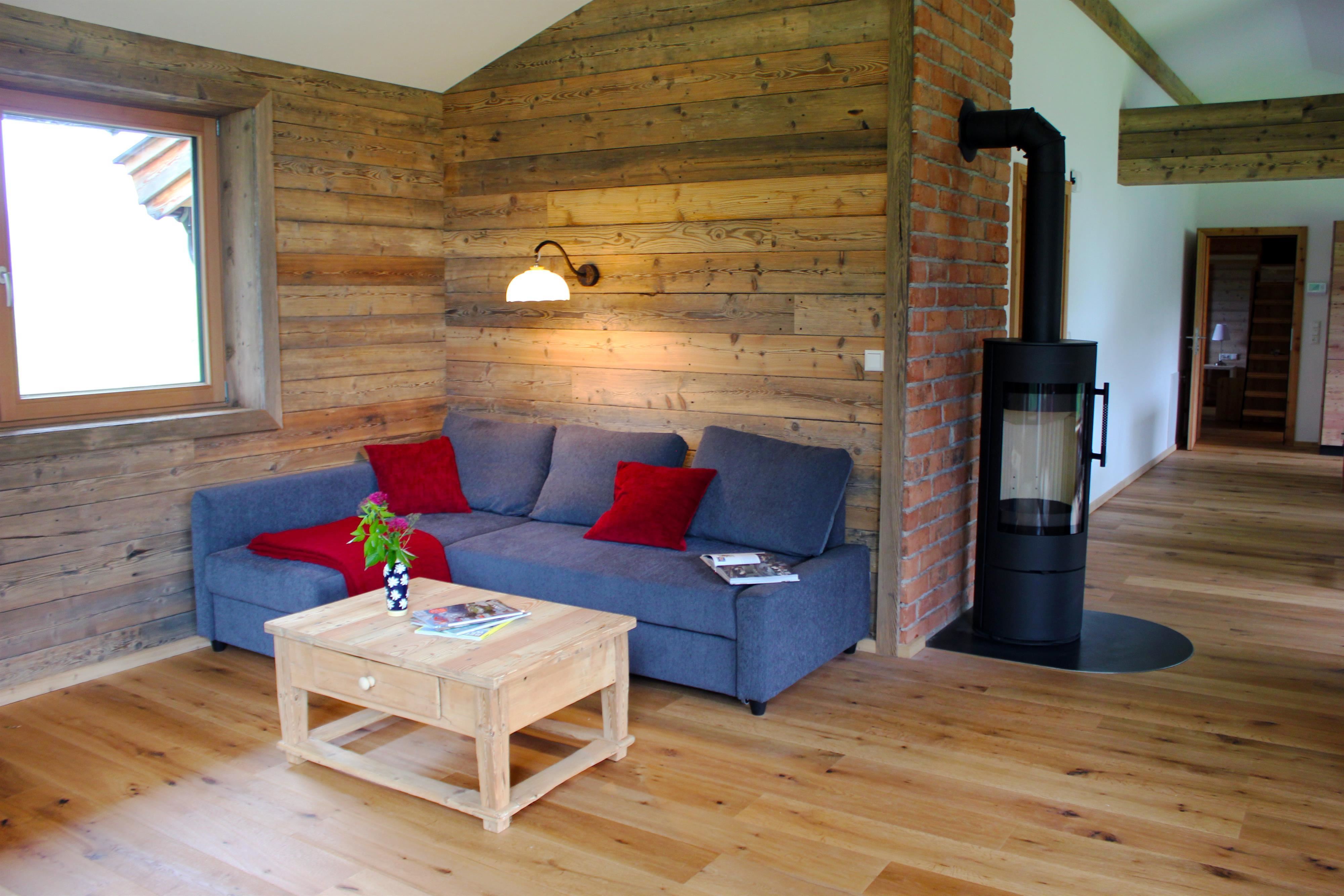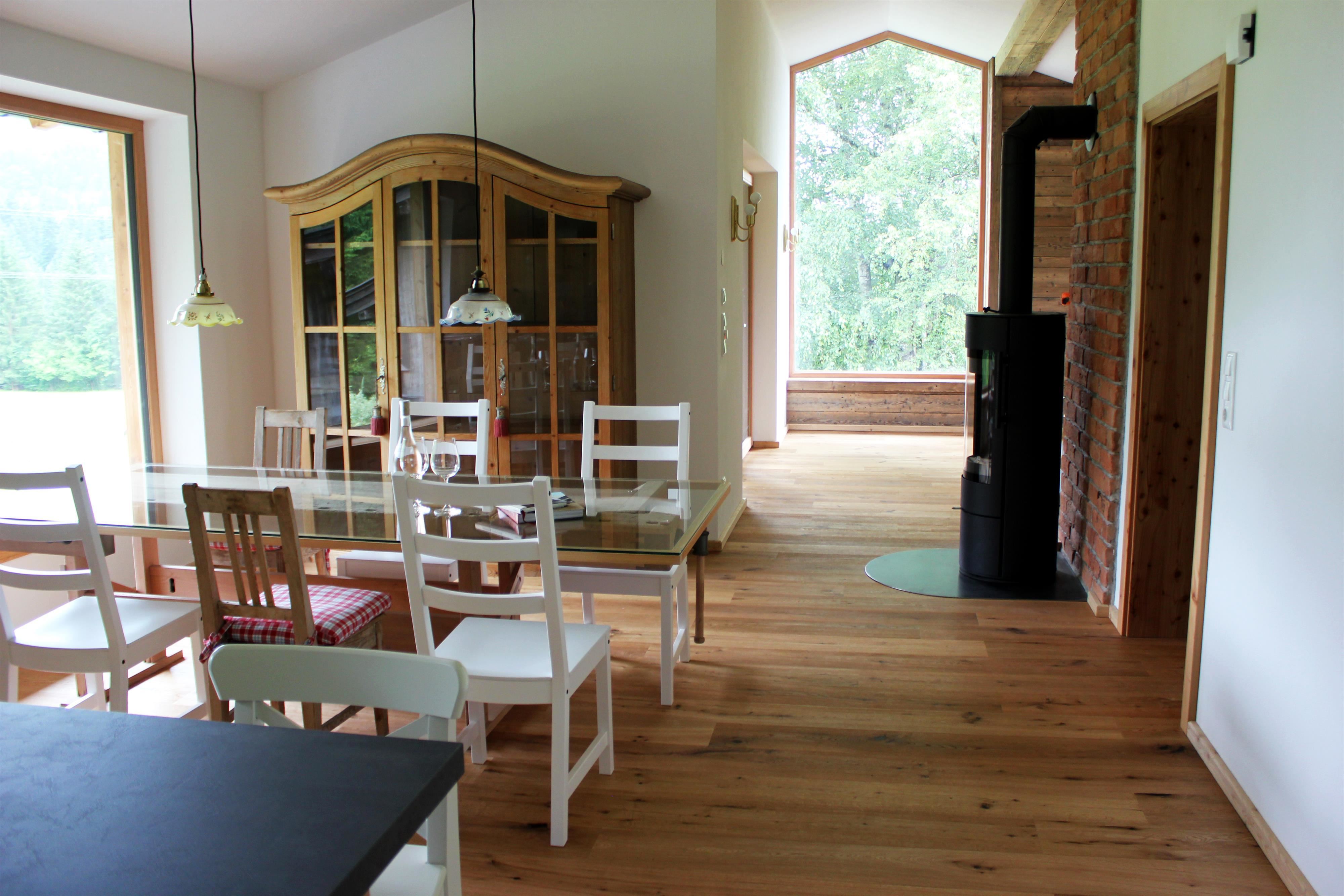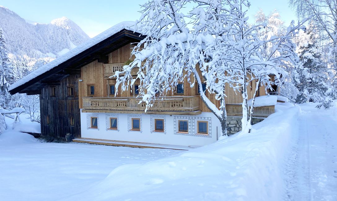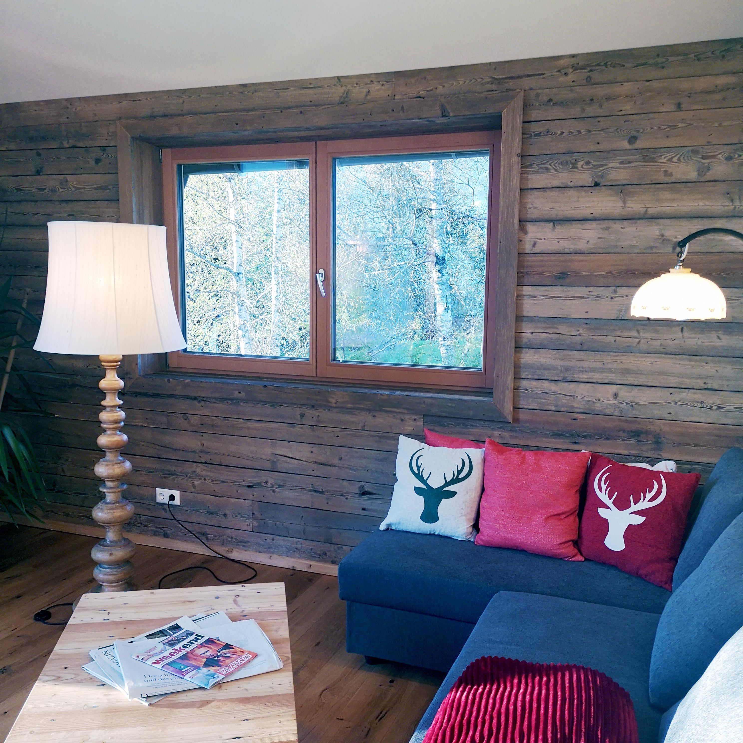 A peaceful hideaway surrounded by nature. The estate “Reitl” is situated on a plateau above the village of Fieberbrunn not far from the “Lauchsee” lake. The newly constructed almost 100 square meters of living space with large windows and a spacious loggia allow a fantastically beautiful view: forests and grasslands encompassed by the magnificent Tirolian mountains. Sheep and horses graze on our meadows, wild ducks bathe in the pond and deer come by as the sun sets.