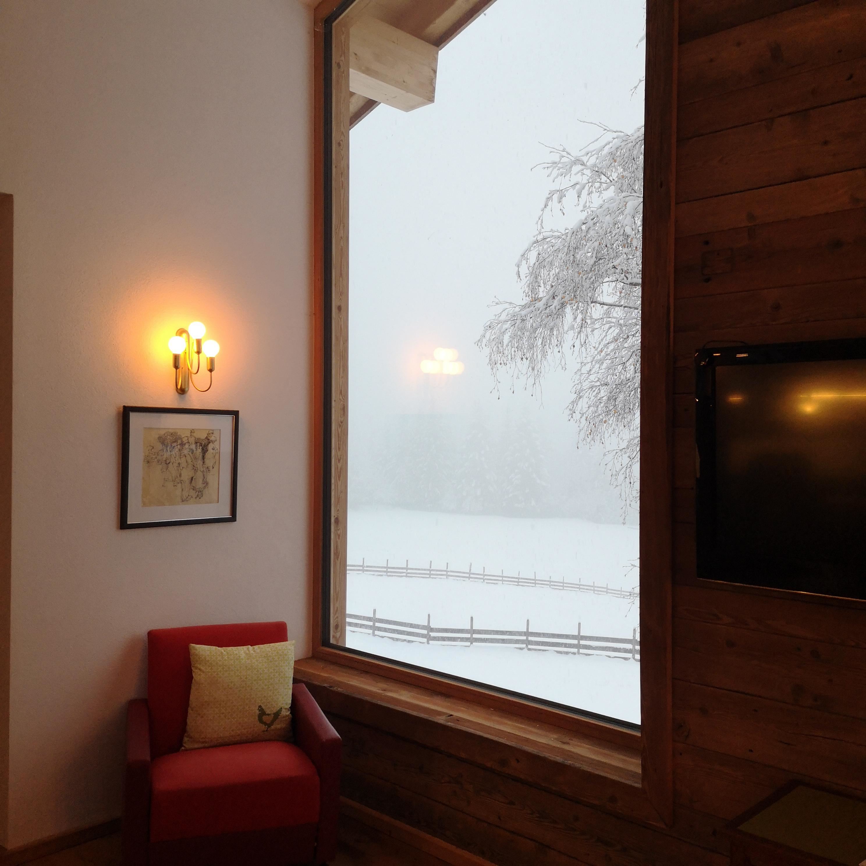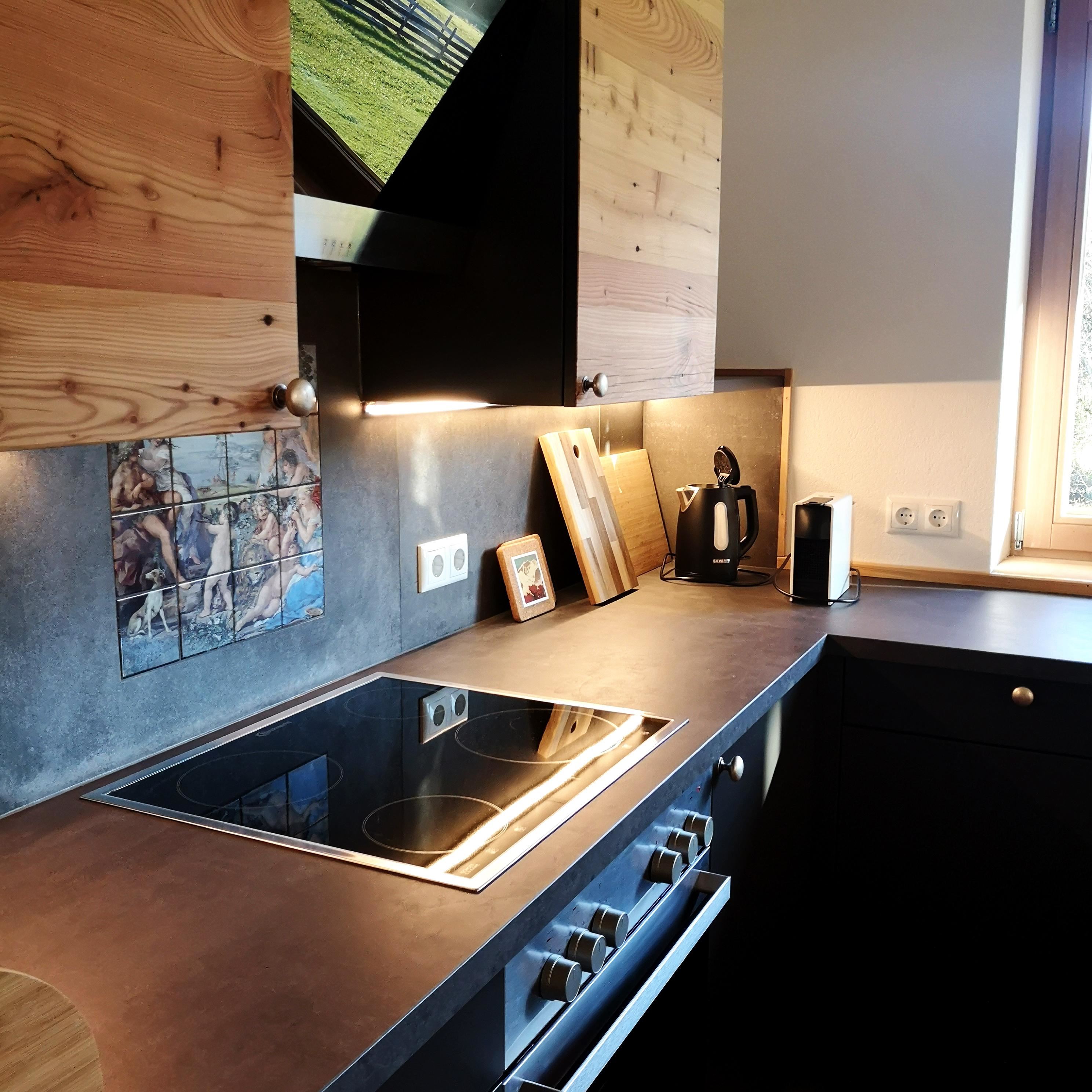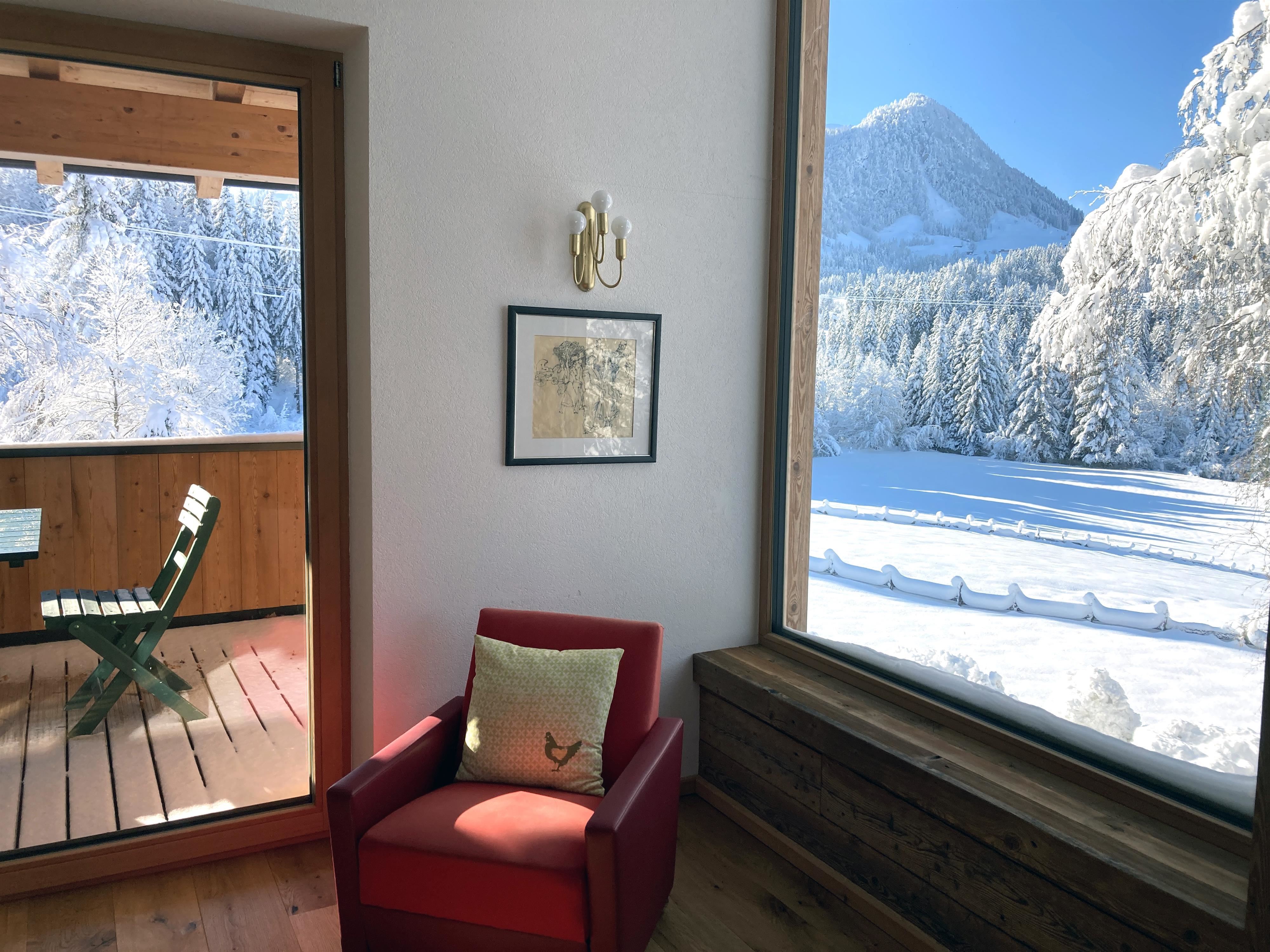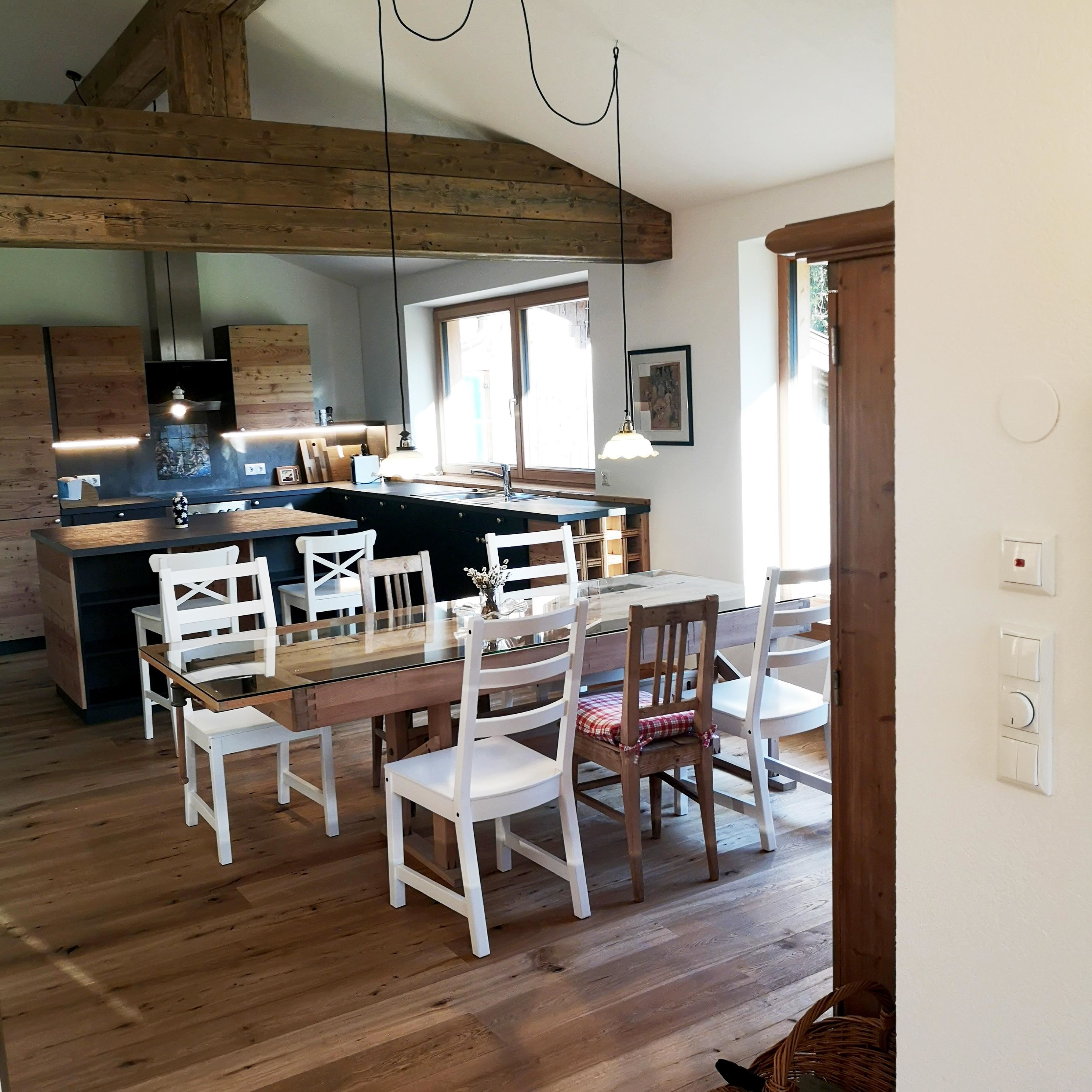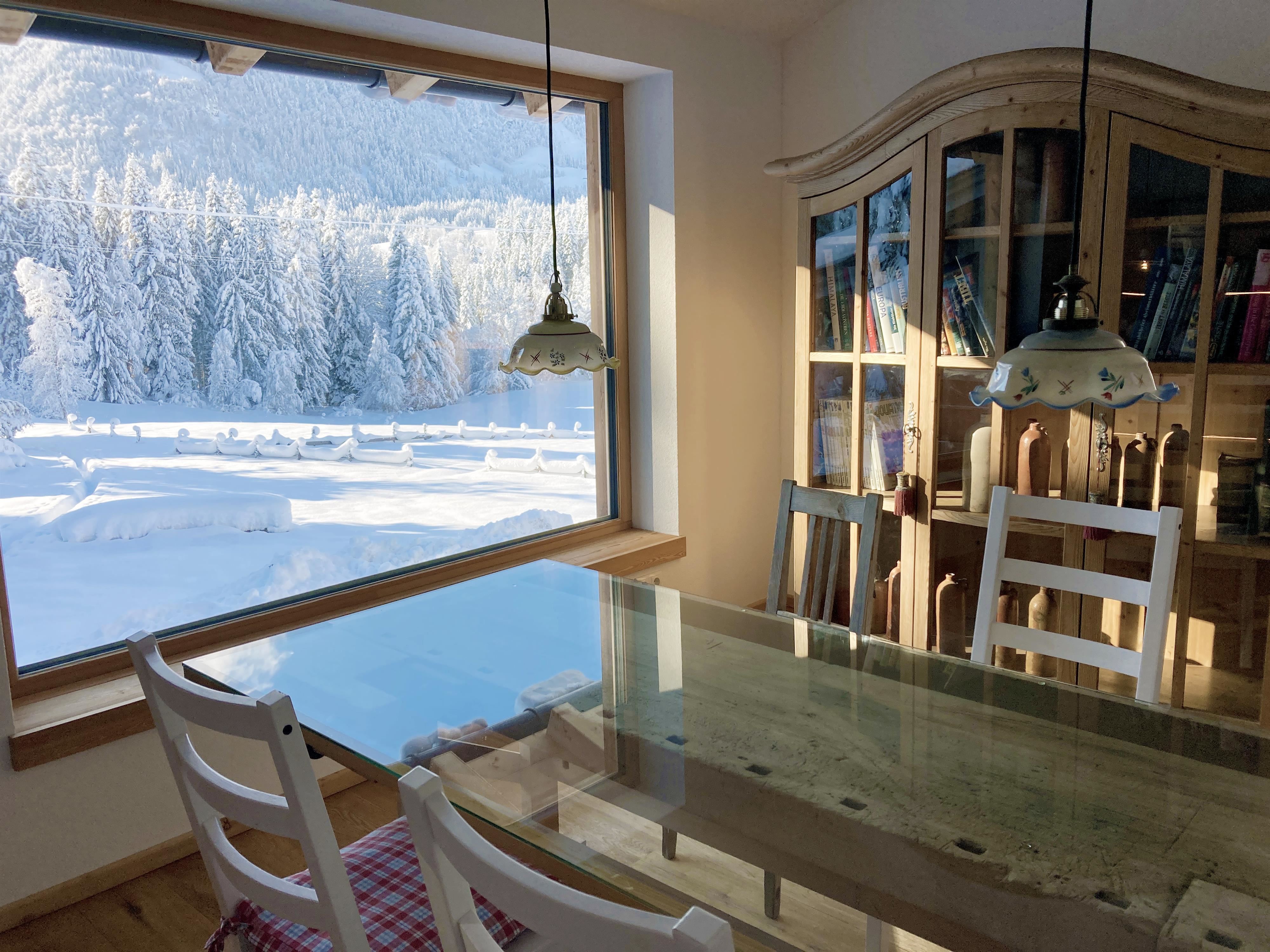 A peaceful hideaway surrounded by nature. The estate “Reitl” is situated on a plateau above the village of Fieberbrunn not far from the “Lauchsee” lake. The newly constructed almost 100 square meters of living space with large windows and a spacious loggia allow a fantastically beautiful view: forests and grasslands encompassed by the magnificent Tirolian mountains. Sheep and horses graze on our meadows, wild ducks bathe in the pond and deer come by as the sun sets.