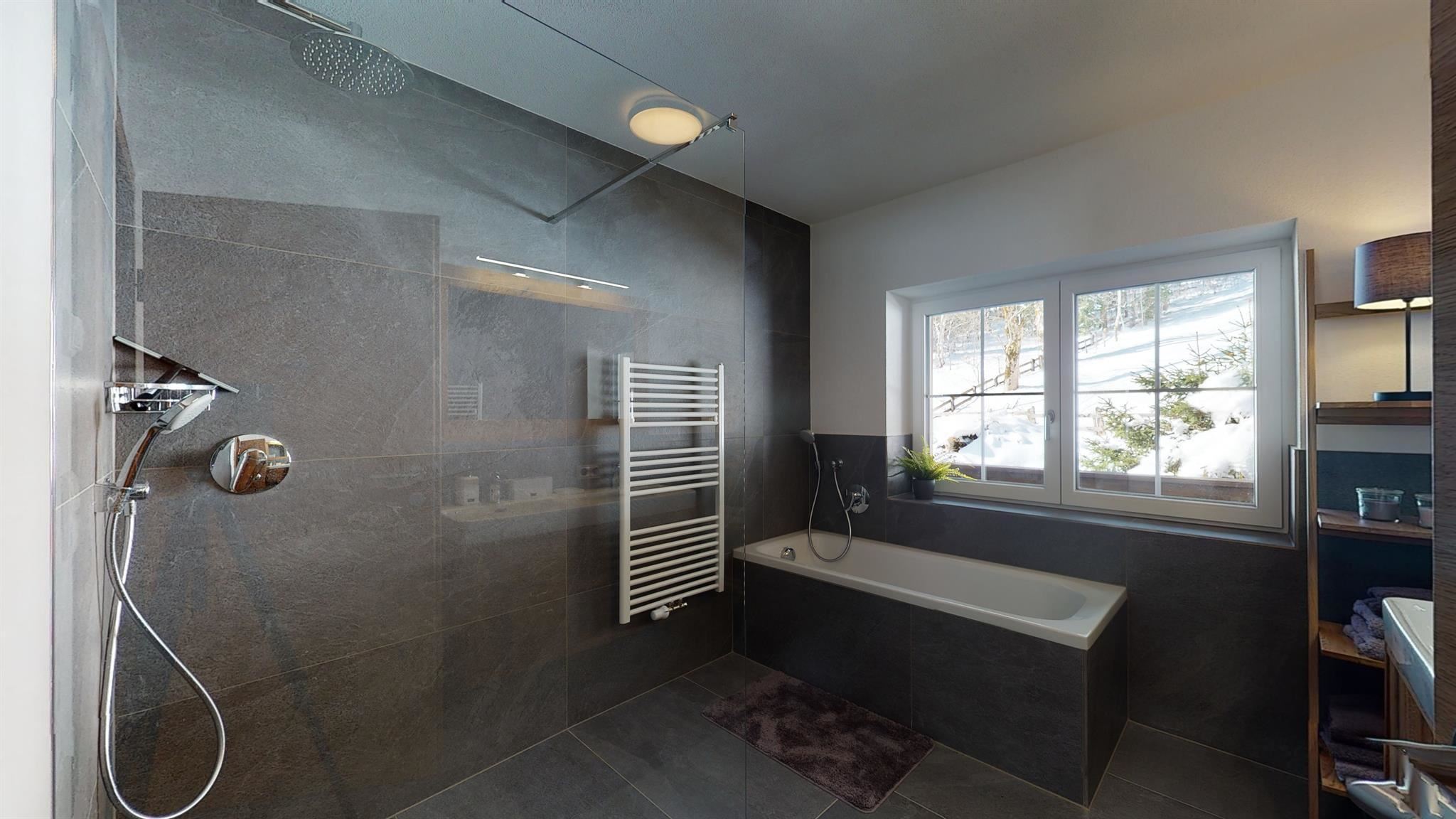 - High-quality bathroom: The bathroom offers maximum comfort with a double washbasin, bathtub and separate shower. The WC is located separately for added convenience.