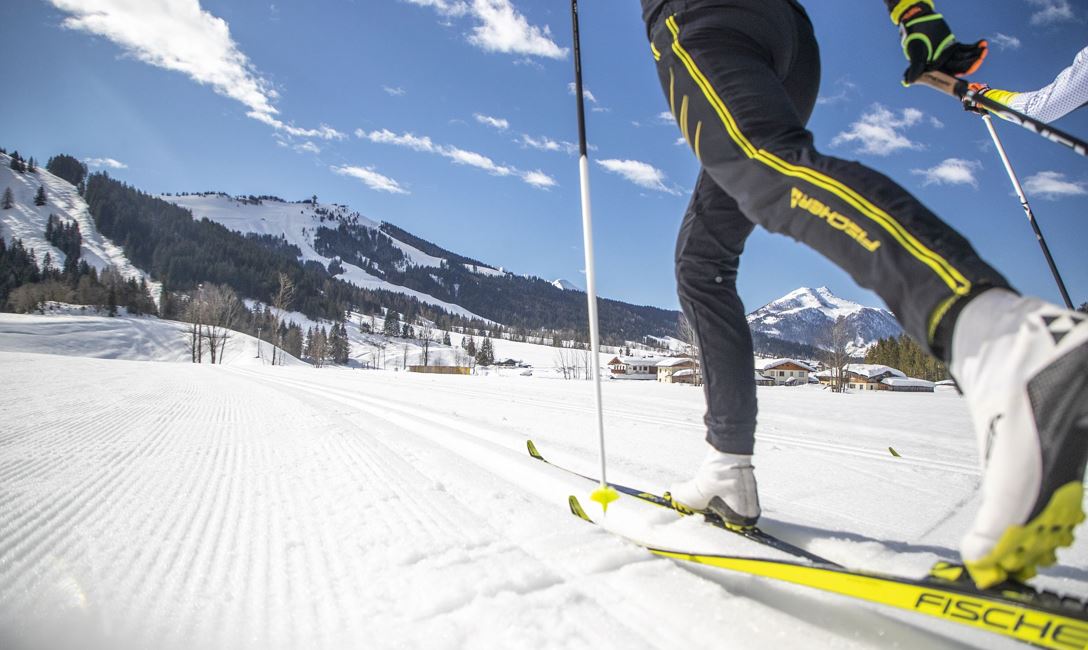 The track offers mavellous panoramic views over the " Kitzbüheler Horn", the "Karstein", the "Wildseeloder" and the "Loferer Steinberge"mountains. The track leads you along the sport field, further to " Moosbach" and after view bends - back to the starting point. Altough the track goes through undulating terrain it is categorised as "medium track". Next to the cross-country track is a 4m wide prepared track, which can be used by skaters as well as by hikers.