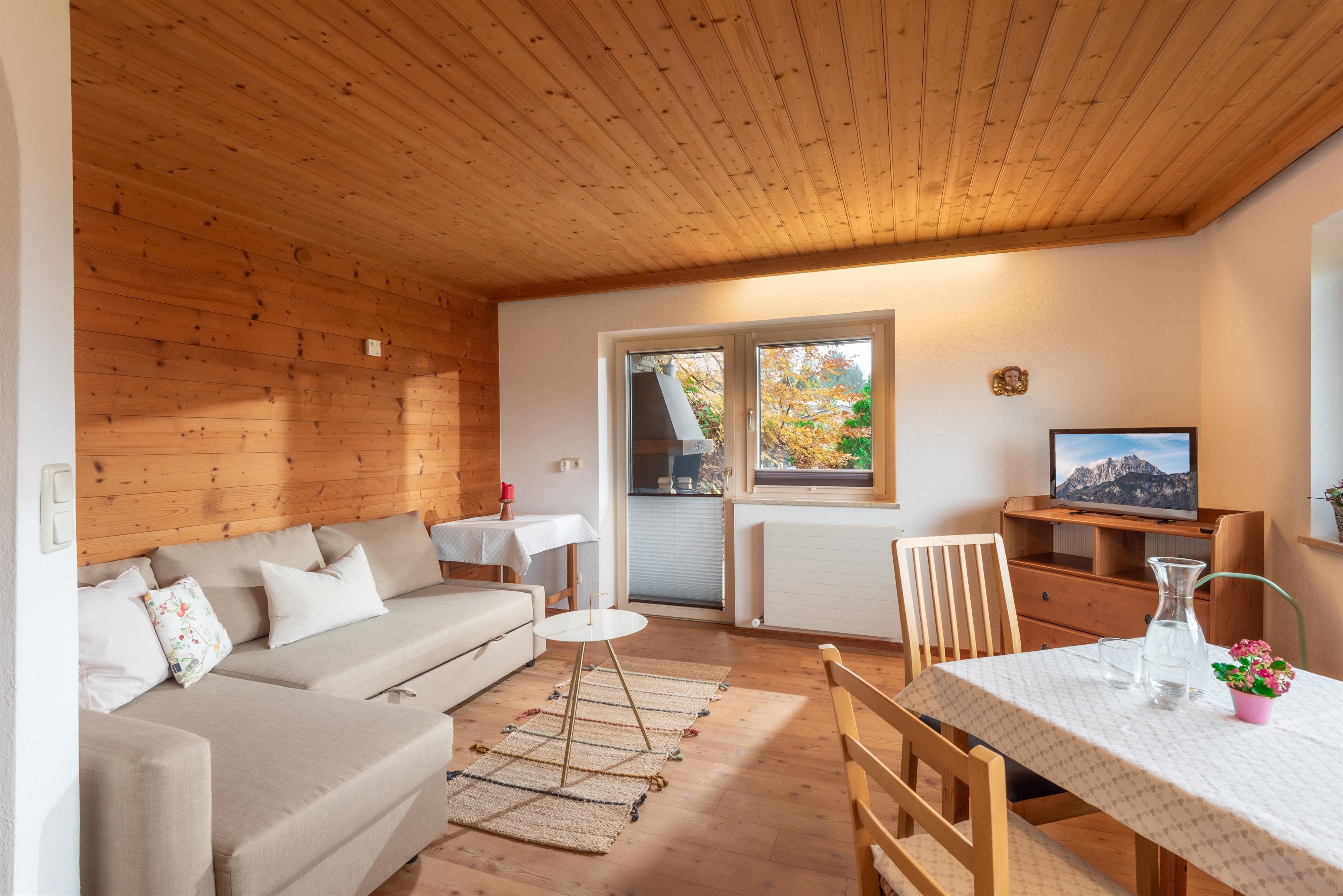 The apartment is located right next to the ski slope, overlooking the Wilden Kaiser and the market town of St. Johann.