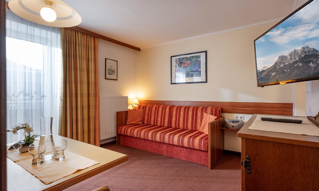 Our apartment house is in a very quiet, sunny and central location in St. Johann in Tirol, in the heart of the Kitzbühel Alps region, in the middle of one of the most beautiful mountains in Austria, with a wonderful view of the Wilder Kaiser and the Kitzbüheler Horn. In summer, we offer wonderful hikes and bike tours in the beautiful surroundings. In winter you can use the cross-country ski runs in the immediate vicinity or take the free ski bus - bus stop in front of the house - to the town center and the cable car. The bathing world with outdoor pool, slides, indoor pool, sauna, indoor tennis court and artificial ice rink is about 400m away. Our NEWLY RENOVATED apartments with new windows, fly screens, with a balcony or terrace with an awning are tastefully furnished and have every comfort and free WIFI. For our guests there is a sunbathing lawn with loungers, children's playground and covered barbecue area, coin-operated washing machine and dryer, vacuum cleaner.