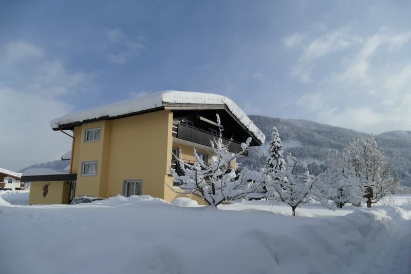 Our holiday apartment is located on the 1st floor and has 2 bedrooms, 2 bathrooms, a kitchen with a dining area, a living room with a pull-out sofa for 2 people, satellite TV, and a balcony with a view of our garden, the Wilder Kaiser, and the Kitzbühel Horn.