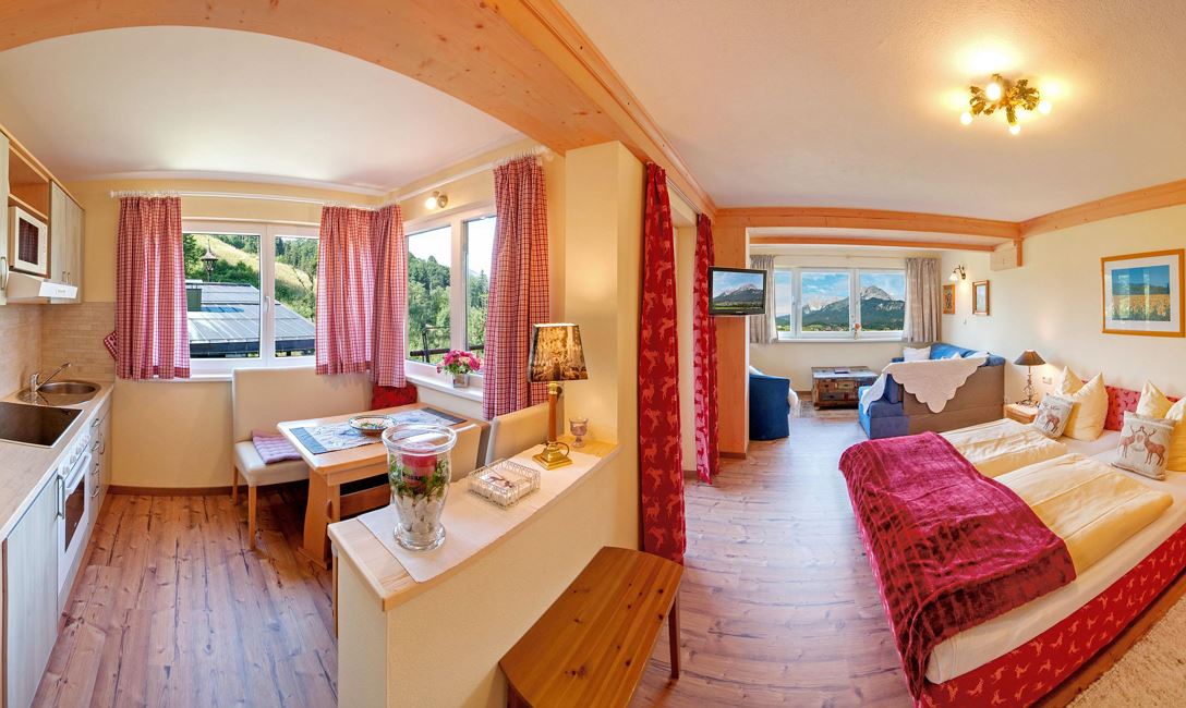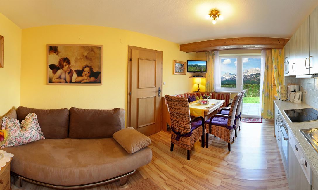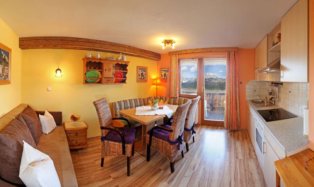 Eight holiday apartments to accommodate 2 – 6 persons, fully-furnished with spacious, southwest-facing balconies and terraces with fantastic views of the Wilder Kaiser. The apartments, with tasteful wooden furnishings and décor, provide a comfortable homely environment.