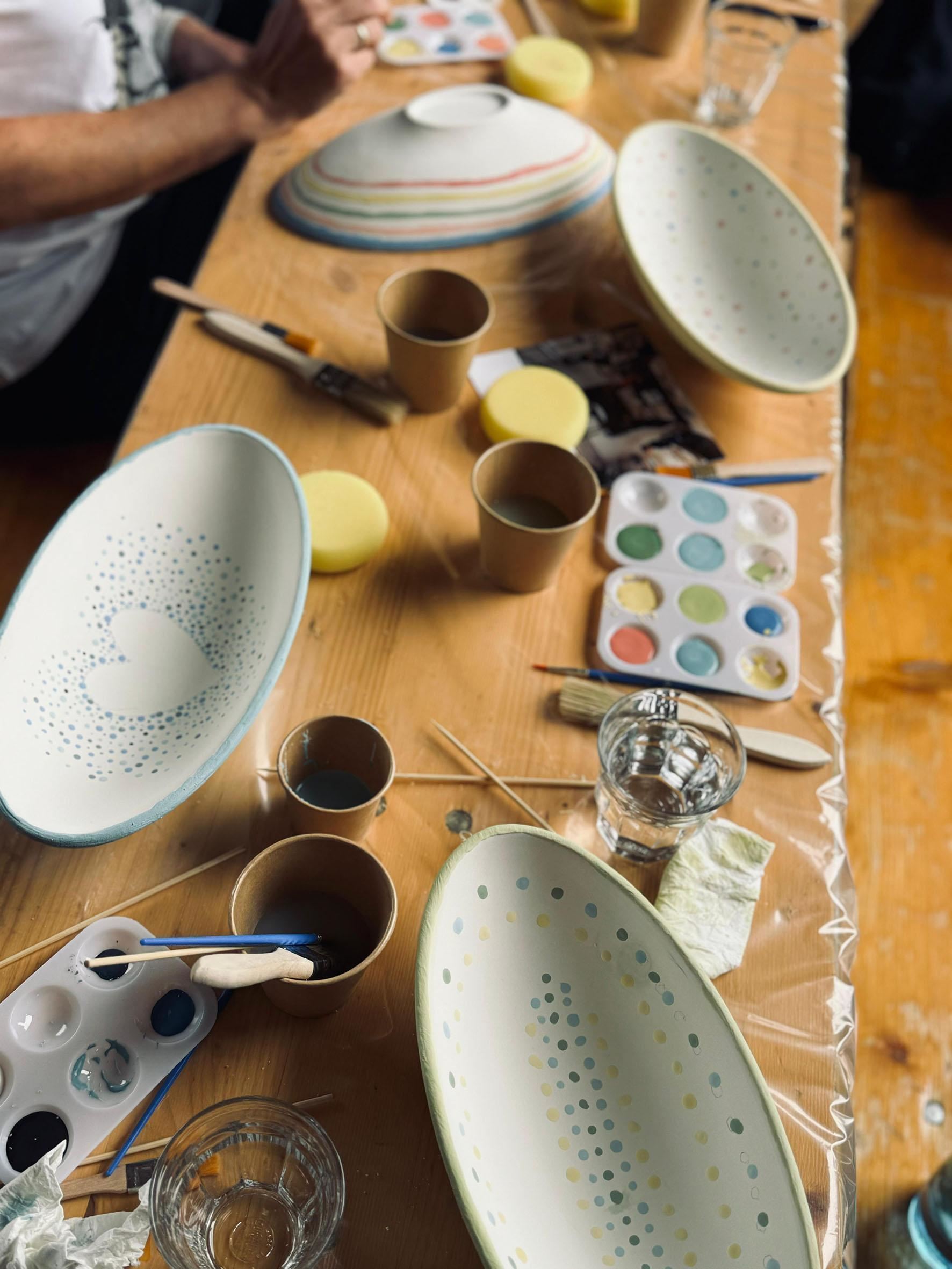 Painting ceramics in a relaxed atmosphere - Unleash your creativity and enjoy a nice glass of wine
