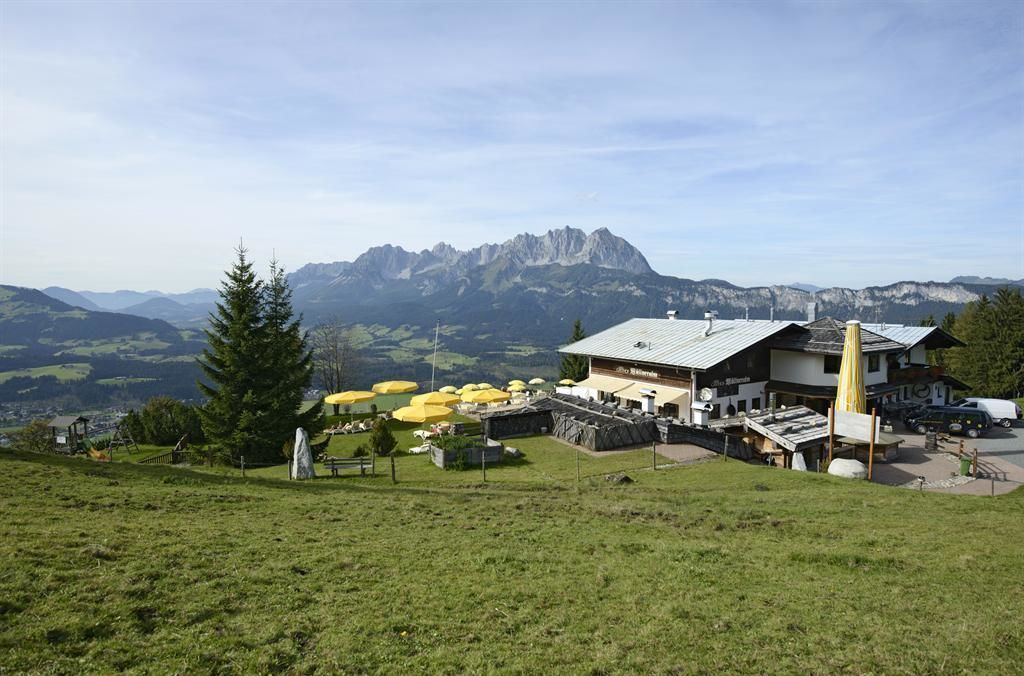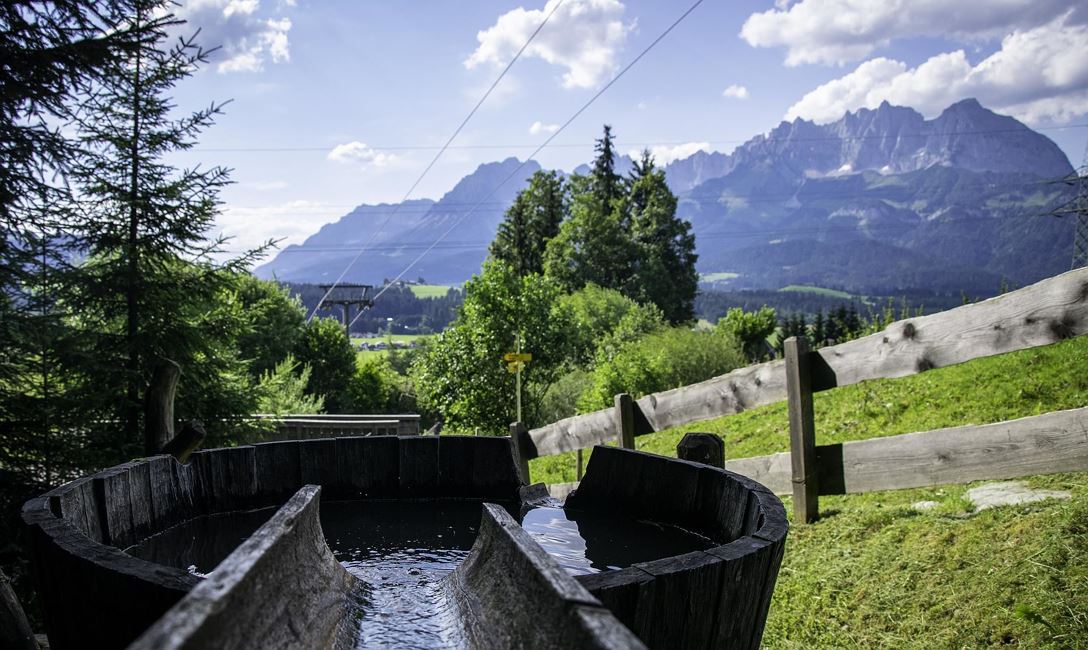 Start your alpine pasture tour at the parking lot Penzing in Oberndorf. Via the Penzingweg, you will soon reach the lovingly renovated Dickat Chapel on a small hill. Past the Oberndorf water games, wet fun for young and old on hot summer days, you follow the hiking trail further on, first through the forest and then across alpine meadows to the Müllneralm, the dog paradise on the Kitzbüheler Horn. The forest path now takes you to the Angereralmsee lake. There, climbers can be seen in the Hornpark climbing forest, the high ropes course in the trees. Soon you leave the forest path and head towards the Angerer Alm. The mountain hut is known for its well-stocked wine cellar with up to 400 exquisite different wines from all over the world. Now continue steadily along forest paths and partly hiking trails to the Harschbichl and the highest hut of the Harschbichl - the Harschbichlalm at 1604m. From the sun terrace you can see the summit of the Kitzbüheler Horn very close. Slowly you return to the valley. You hike down a few meters on the forest path and then branch off to the Stanglalm. A meadow path brings you to a small forest and the cloud cinema. Let your imagination run wild or simply look at the beautiful view of the Kitzbühel Alps mountains through the wooden frame. Arriving at the Stanglalm, you can enjoy home-made and regional food. Via the gravel path you hike in comfortable bends down to the hamlet of Haslach (Bauernladl Kircherbauer, a farm shop is open on Friday afternoons) and continue to the parking lot Penzing.