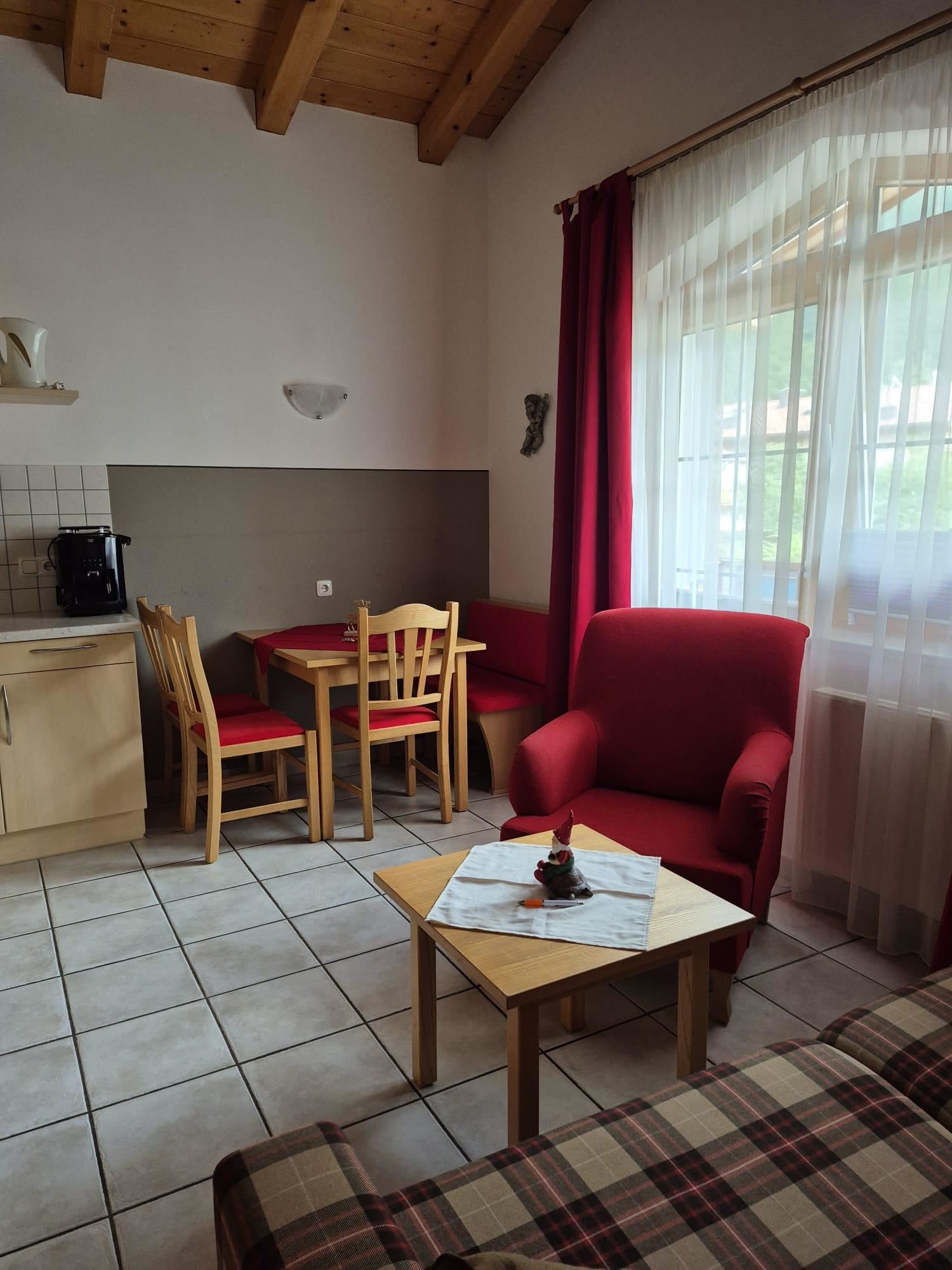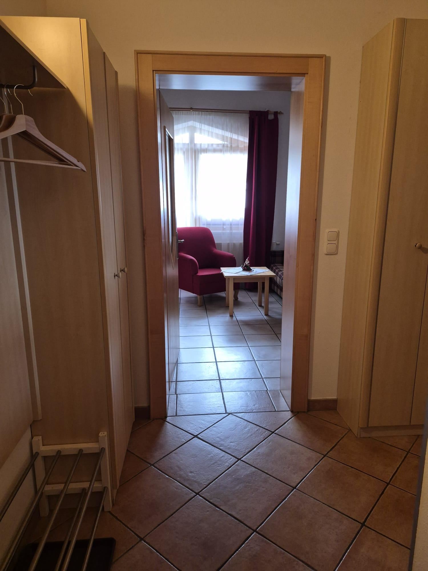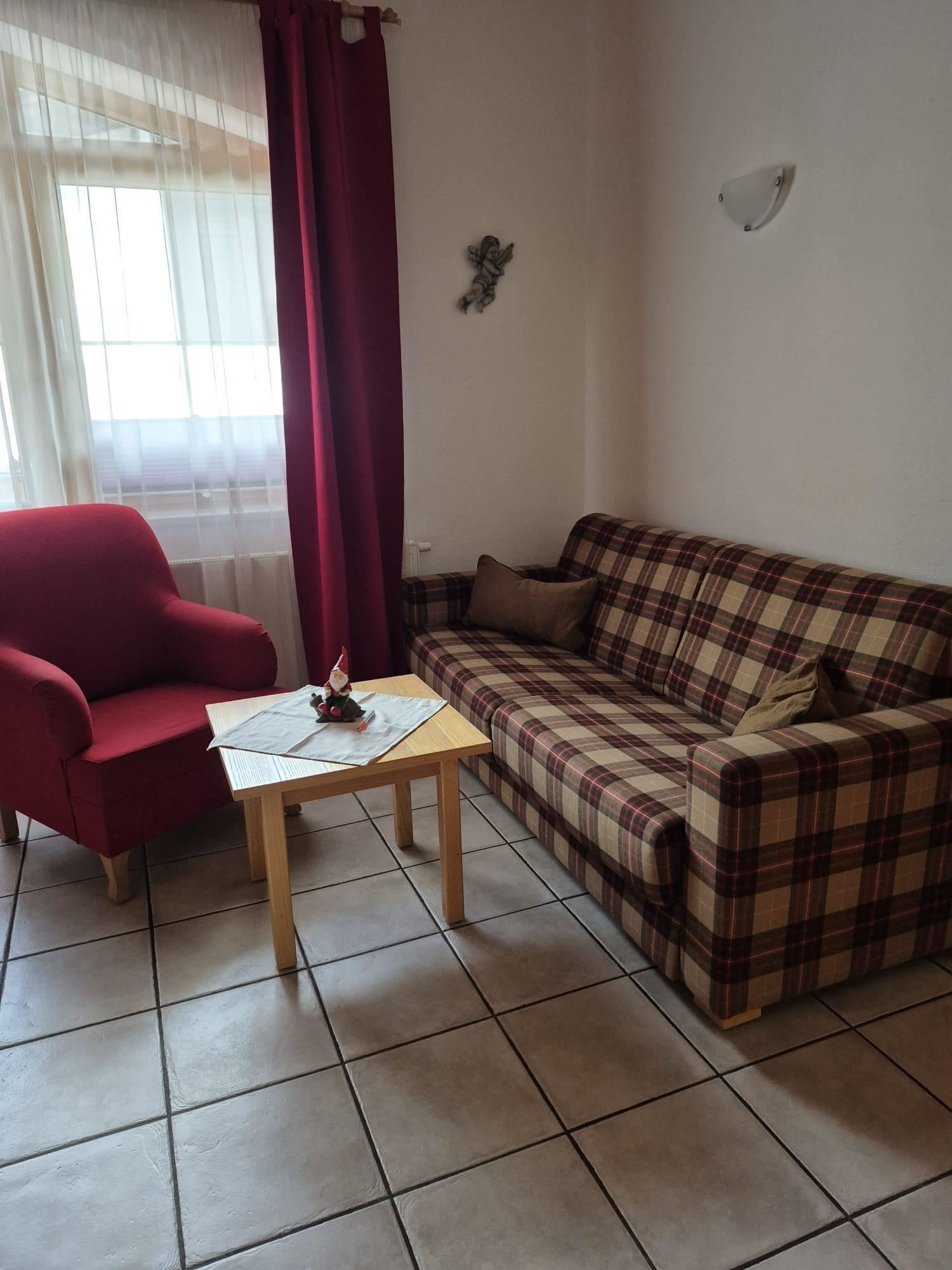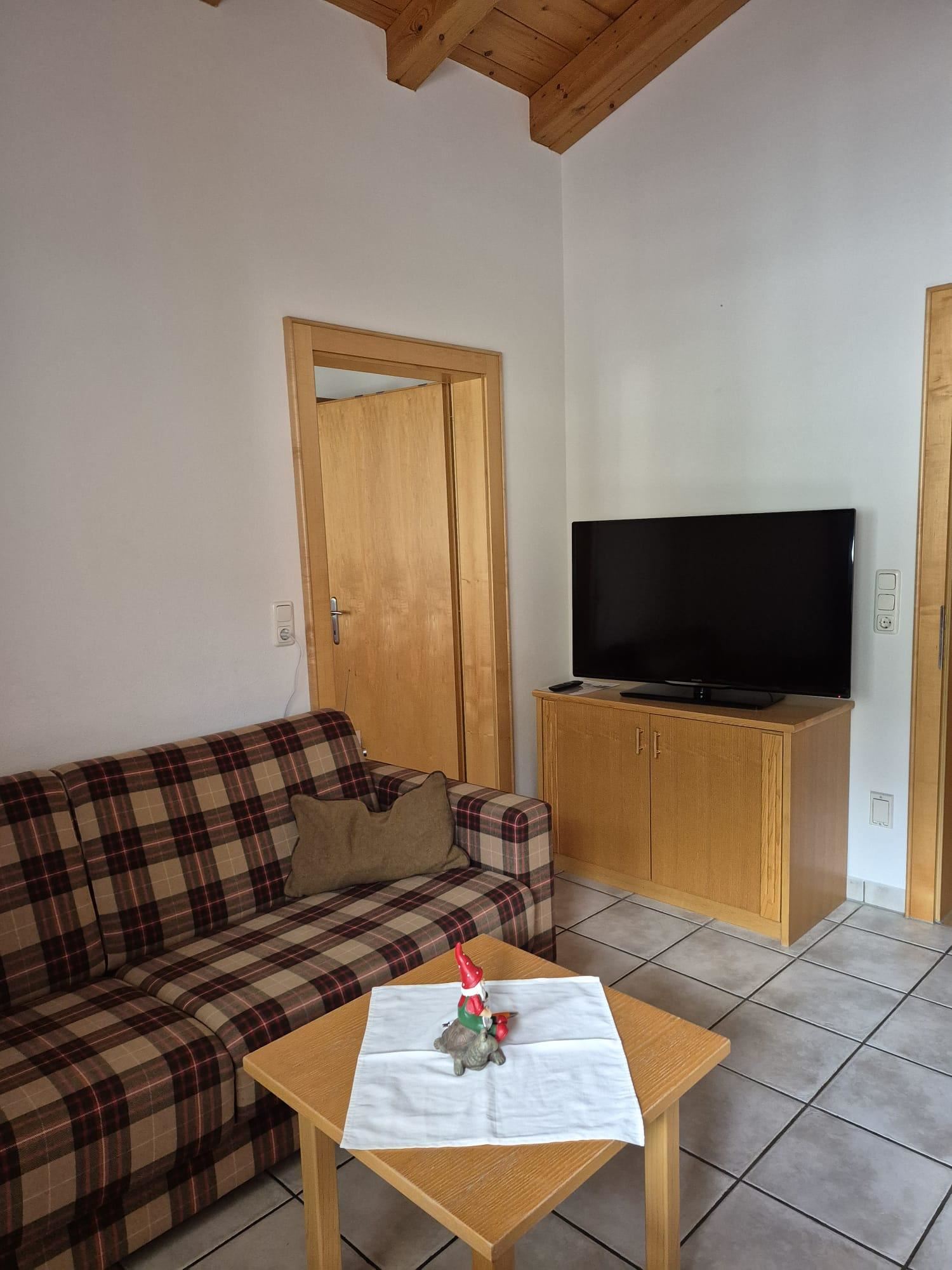 Leuk, klein appartement, ca. 47 m², 2 slaapkamers, keuken, tv, slaapbank in de woonkamer, balkon, op de 1e verdieping.