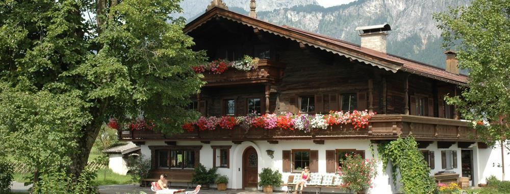 Rij niet de onderdoorgang in op de rijksweg, maar neem bij de rotonde de afslag, ongeveer 500 m in de richting van "Hinterkaiser".