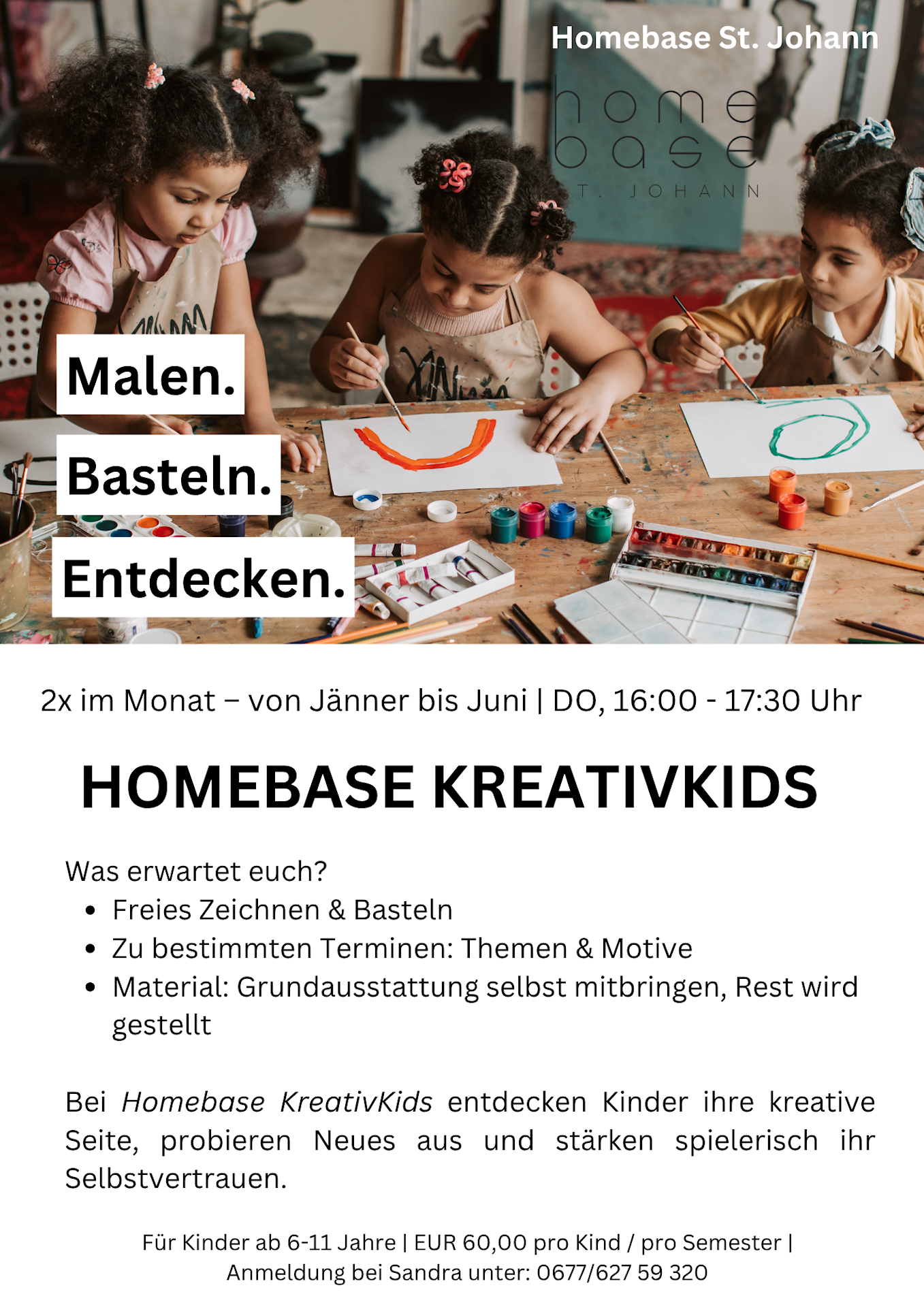 Telefon: +43 676 88 69 07 60Telefon(mobil): +43 650 27 12 302Email: office@homebase-stjohann.atSoortgelijke evenementen